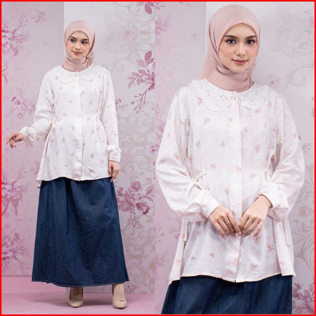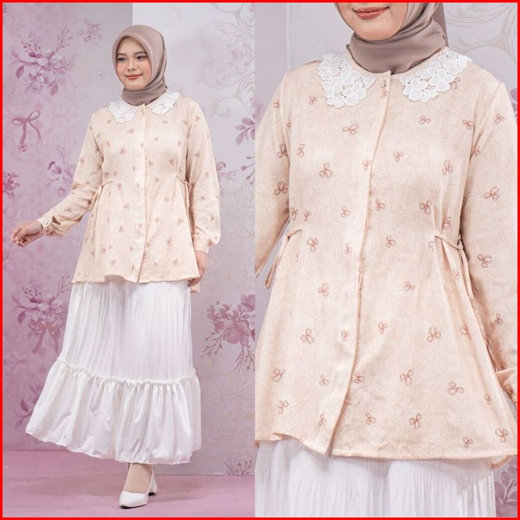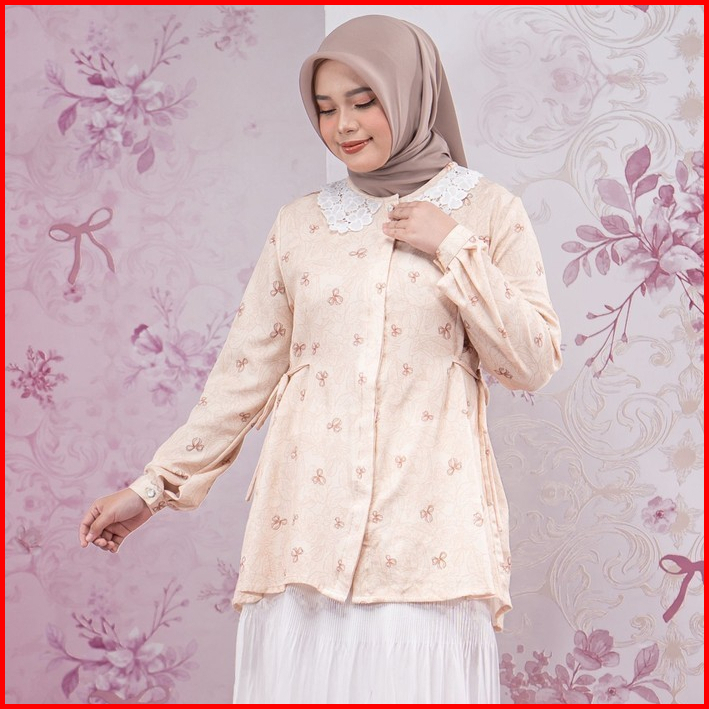 Zianisa - Blouse Kerah Korea Coquette Laysa Series Atasan Motif Wanita Full Kancing Sizing