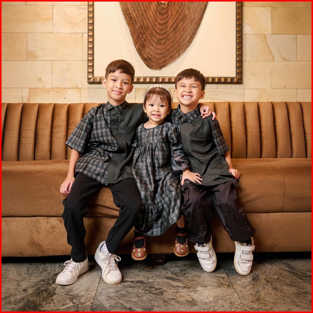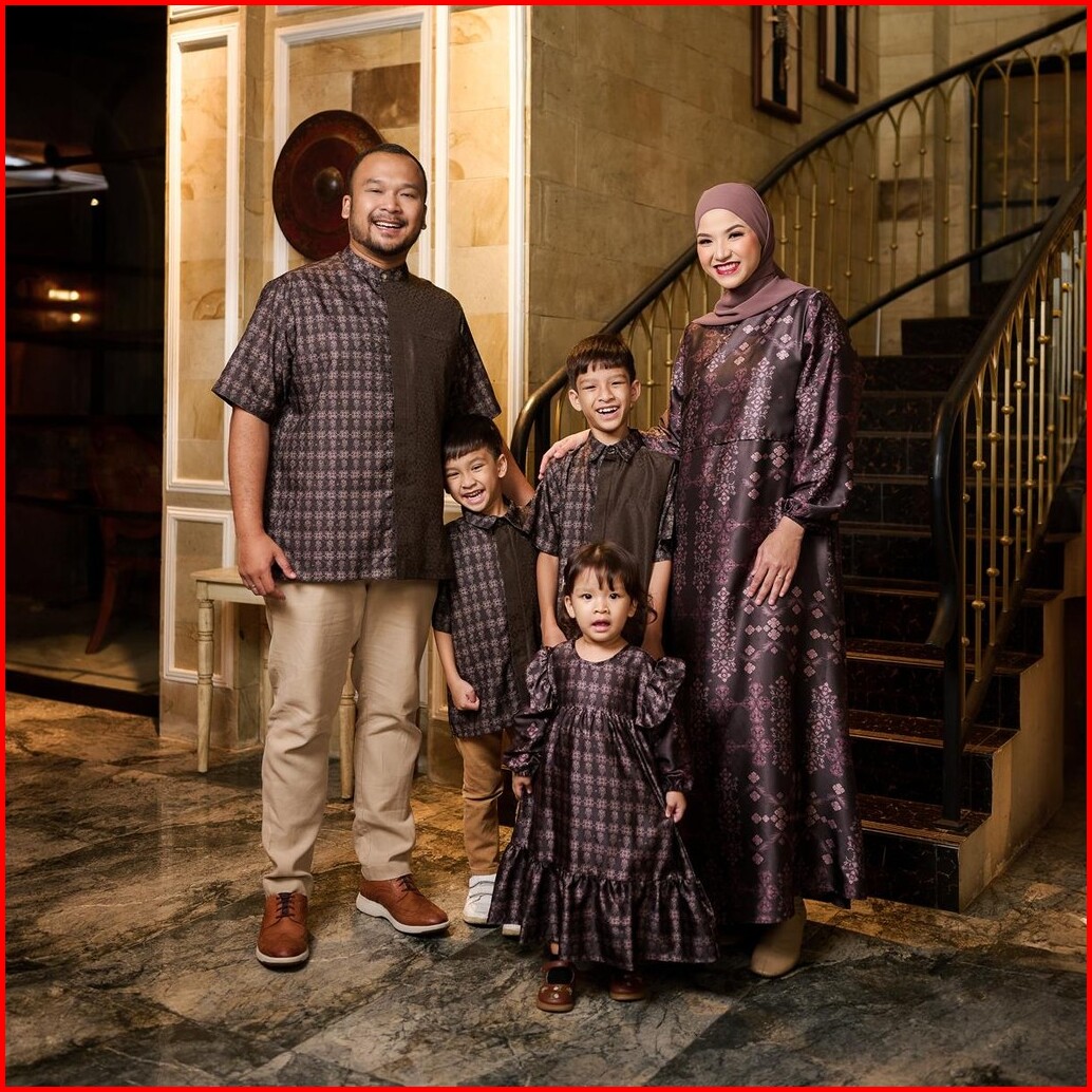Zm Zaskia Mecca - Sarimbit Family Set 1 - Teman Serumpun - Edisi Kamboja Gamis Wanita Kemeja Koko Pria Anak