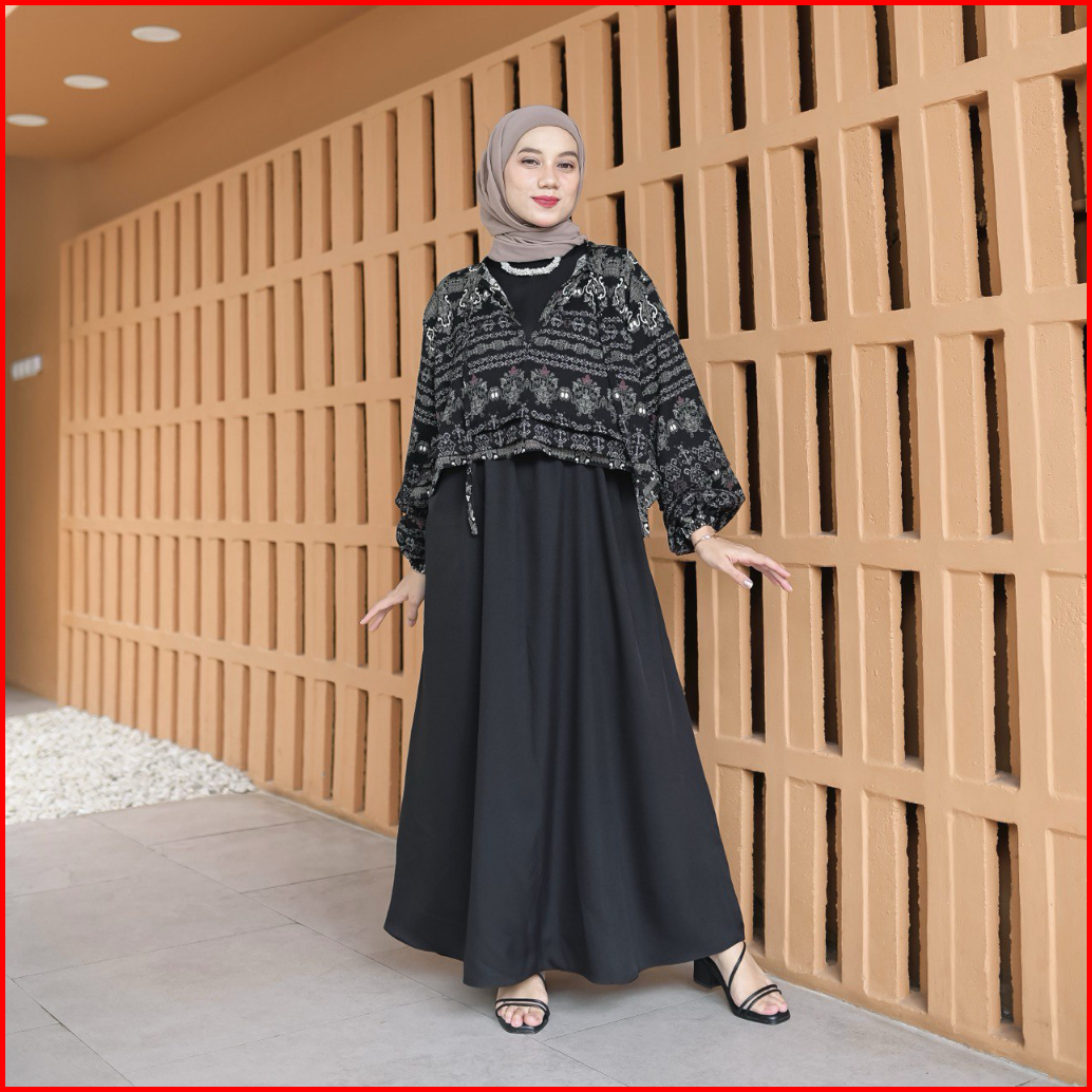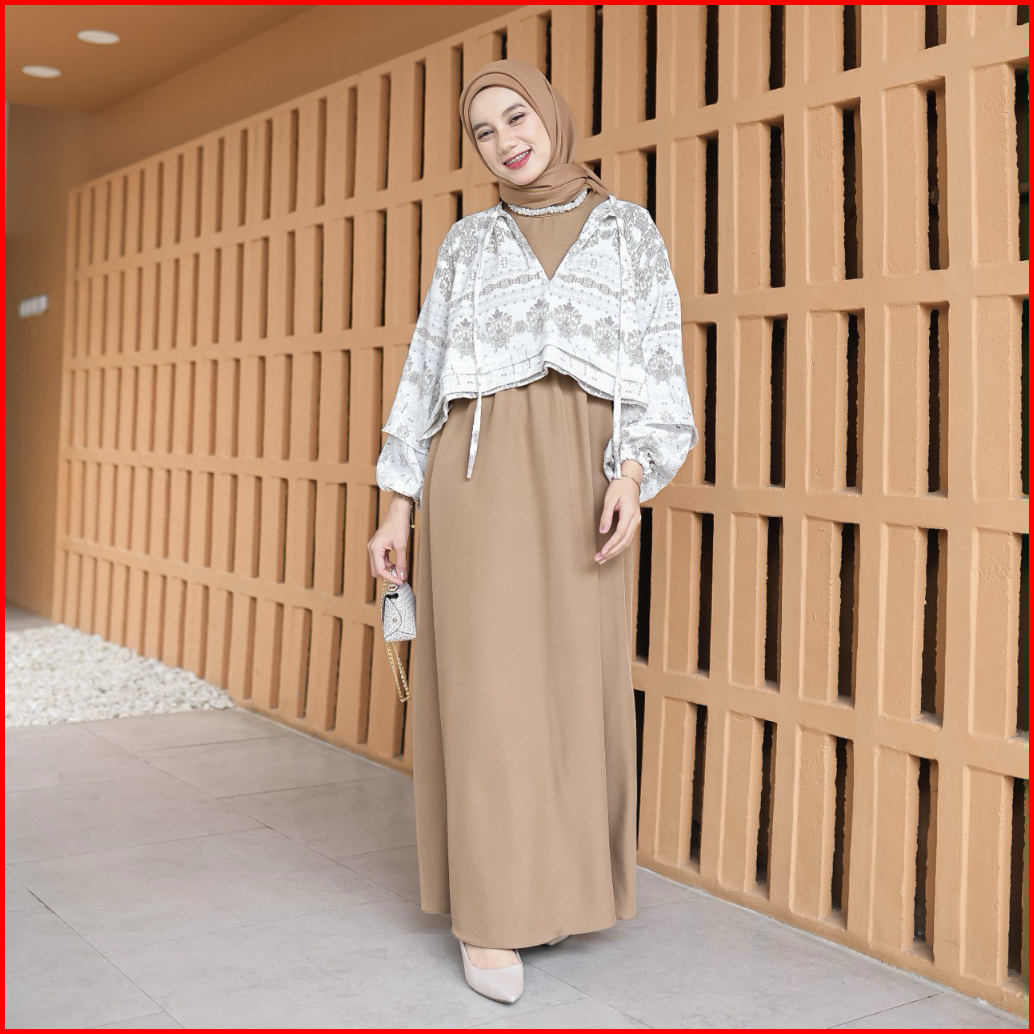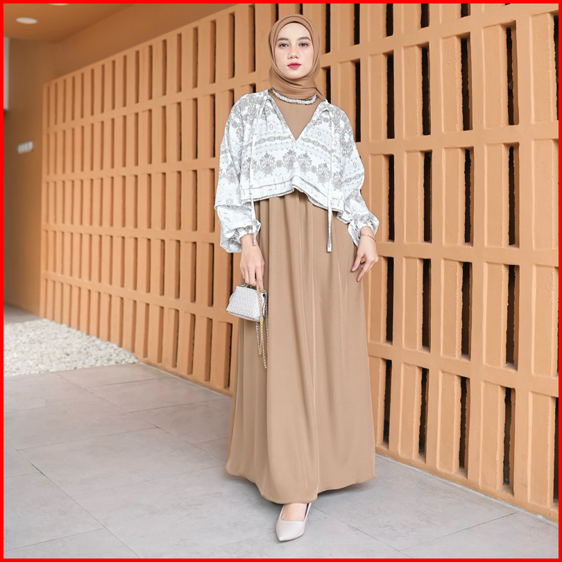 Proudyhijab - Diora Dress Korean Style Dress Outer 2 In 1 Dress Wanita Busui Friendly Bukaan Kanan Kiri