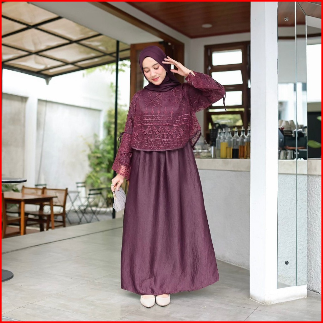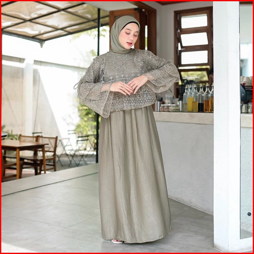 Proudyhijab - Hara Dress Kondangan Bridesmaid Dress Brukat Premium Wanita Busui Friendly Resleting Depan
