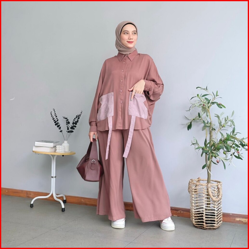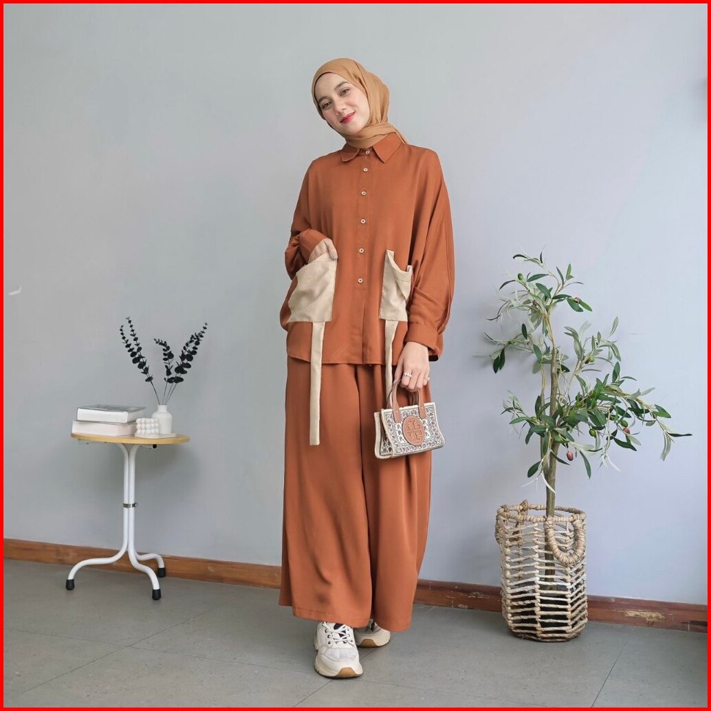 Proudyhijab - Sera Setcel Setelan Atasan Celana Variasi Pocket Depan Bawah Setelan Wanita Kekinian Busui Friendly Full K