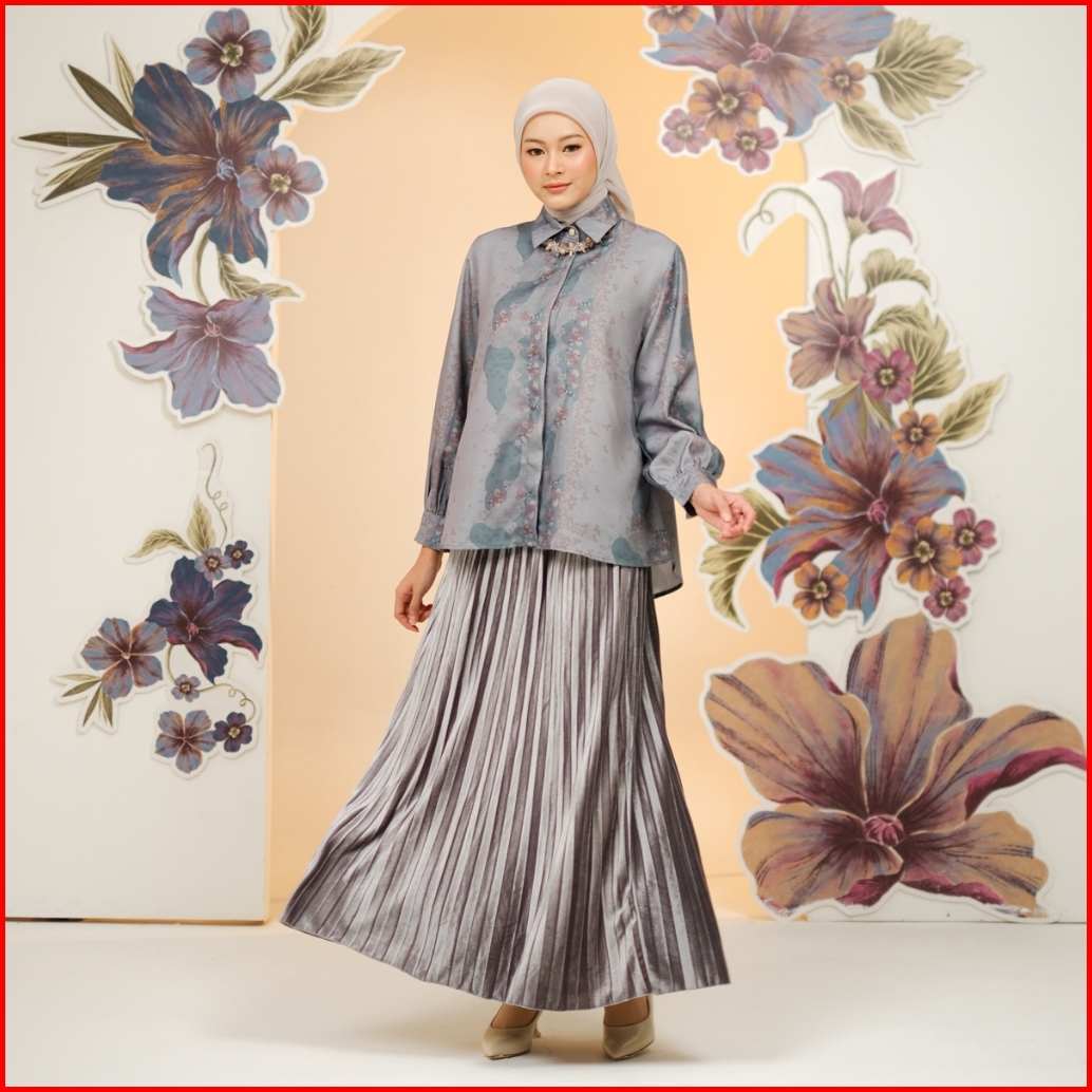 Best Seller Zm Zaskia Mecca - Yania Blouse Kemeja Wanita - Romansa Khatulistiwa - Bunga Simpur