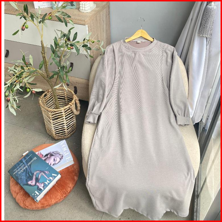 Proudyhijab - Clara Midi Dress Bahan Knit Premium Variasi Slit Bawah Midi Dress Wanita Busui Friendly Bukaan Kanan Kiri