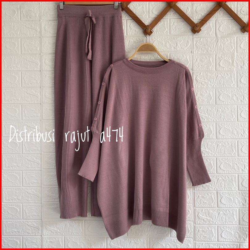 Oneset Atasan Ocha Oversize Setelan Celana Rajut Kulot