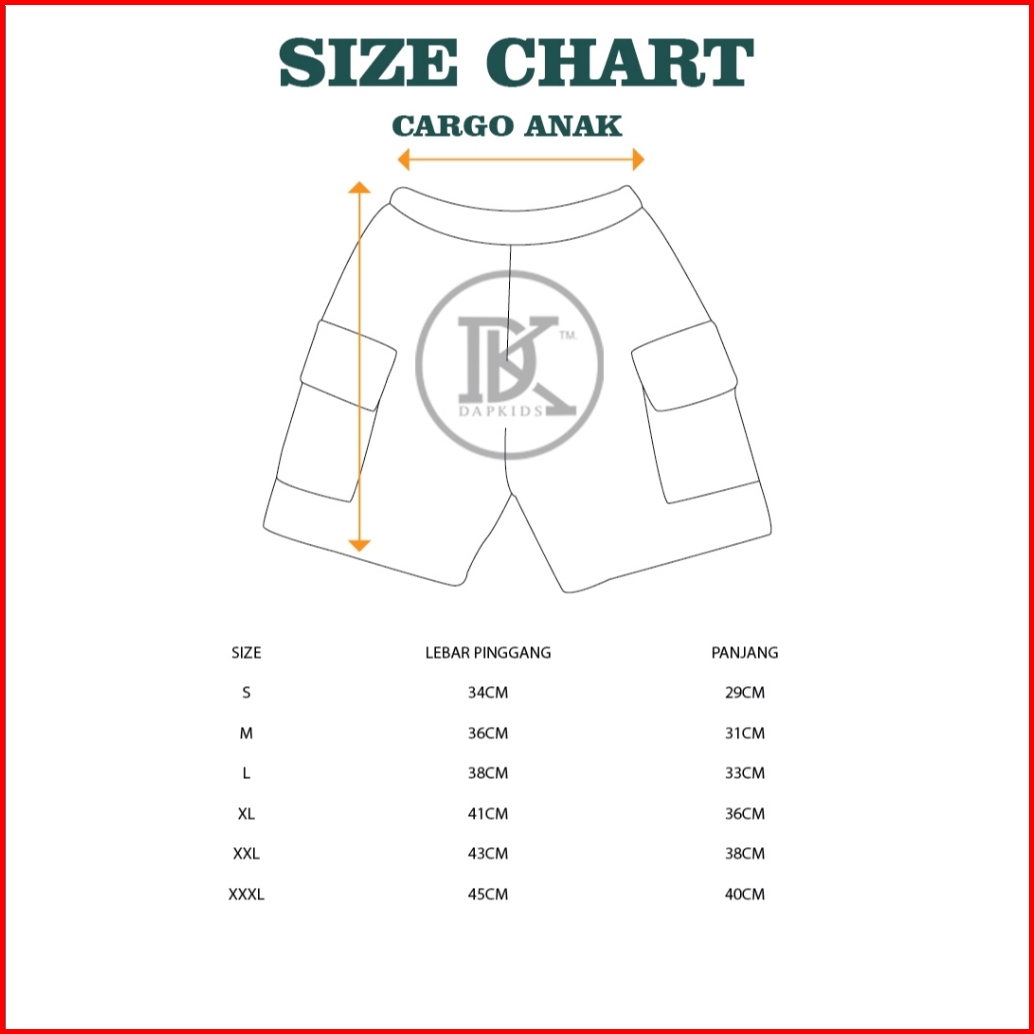 Dap.kids Celana Cargo Pendek Anak Laki Laki Dan Perempuan Umur 1tahun Sampai 12 Tahun Celana Pendek Anak 1-12 Tahun