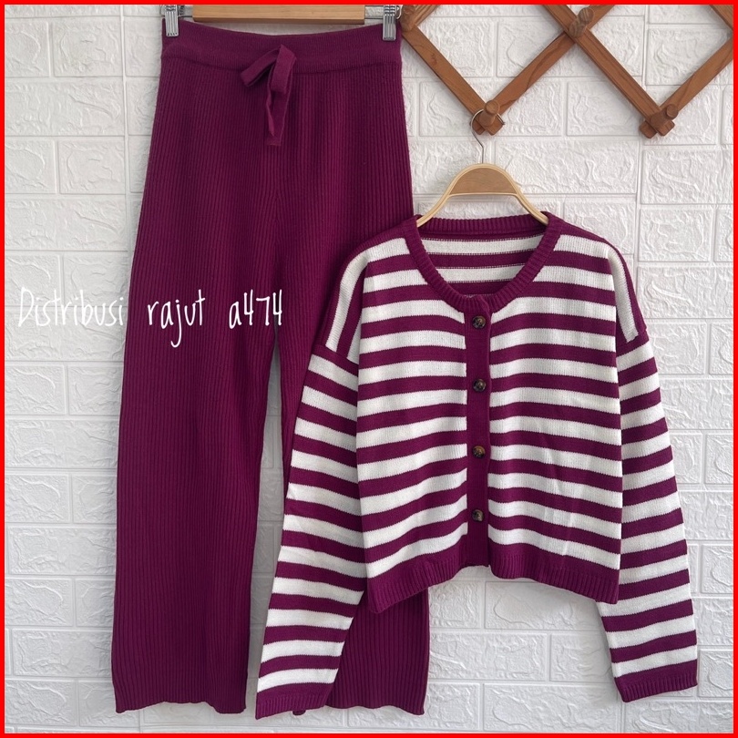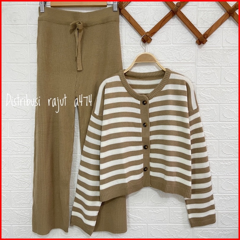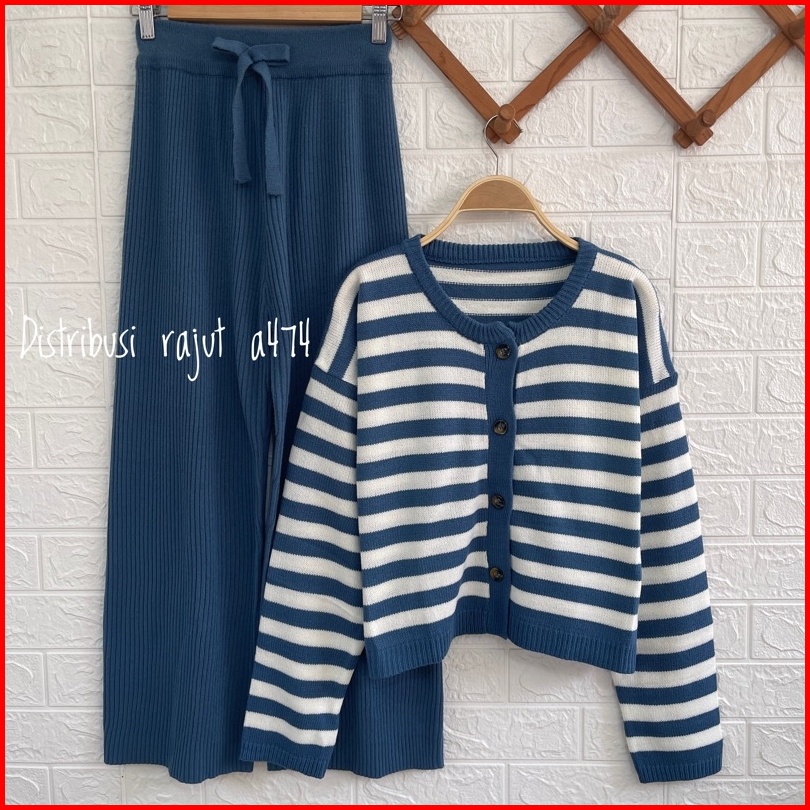 Oneset Cardigan Basic Top Corla Setelan Celana Kulot
