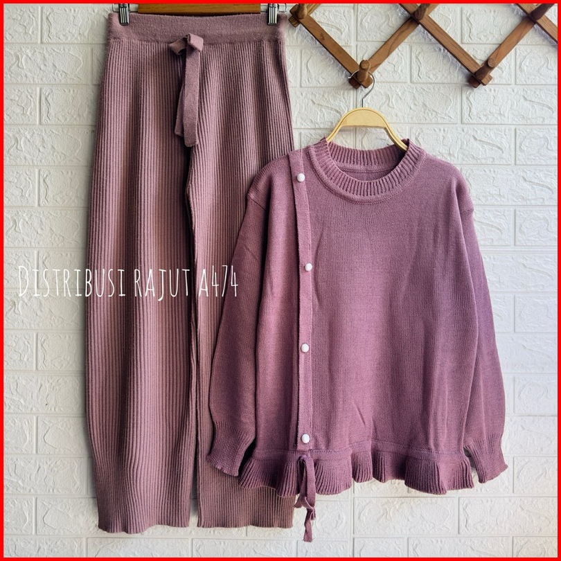 Oneset Jenny 293 Setelan Celana Kulot Rajut Wanita