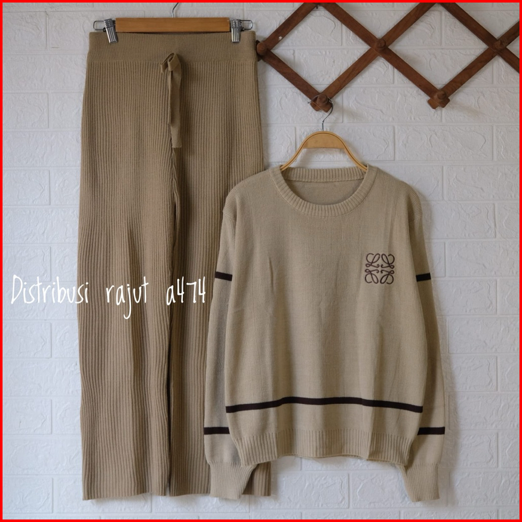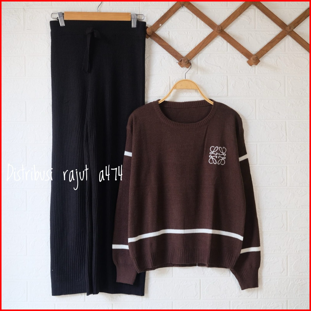 Oneset Bordir Nada Setelan Celana Kulot Rajut Wanita