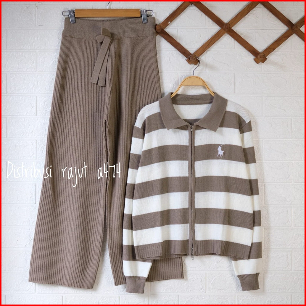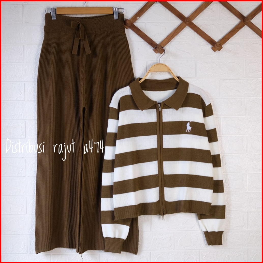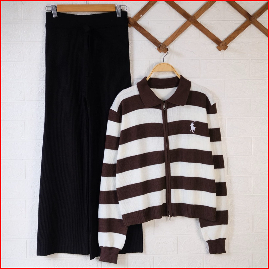 Oneset Fitrianti Sweater Rajut Zipper Setelan Celana Kulot Rajut Wanita