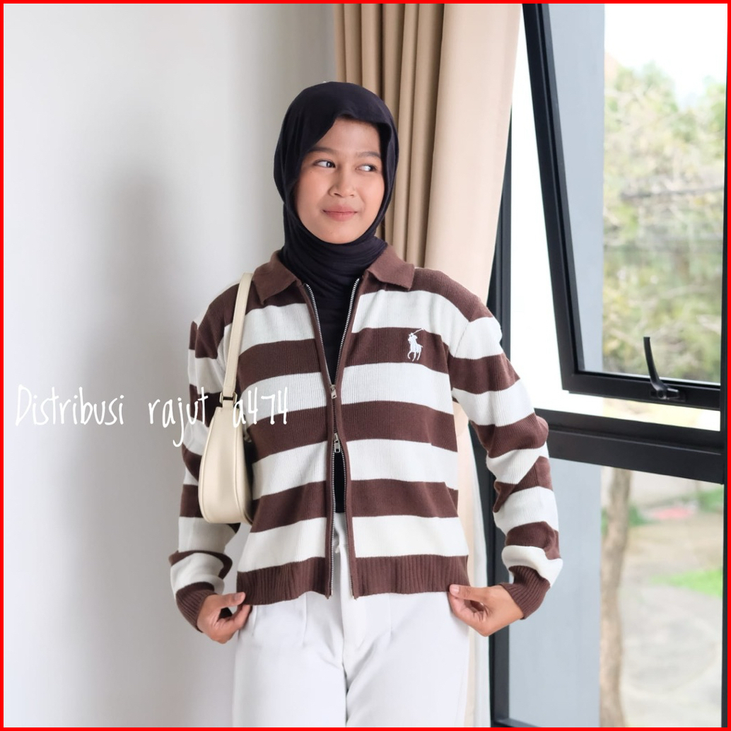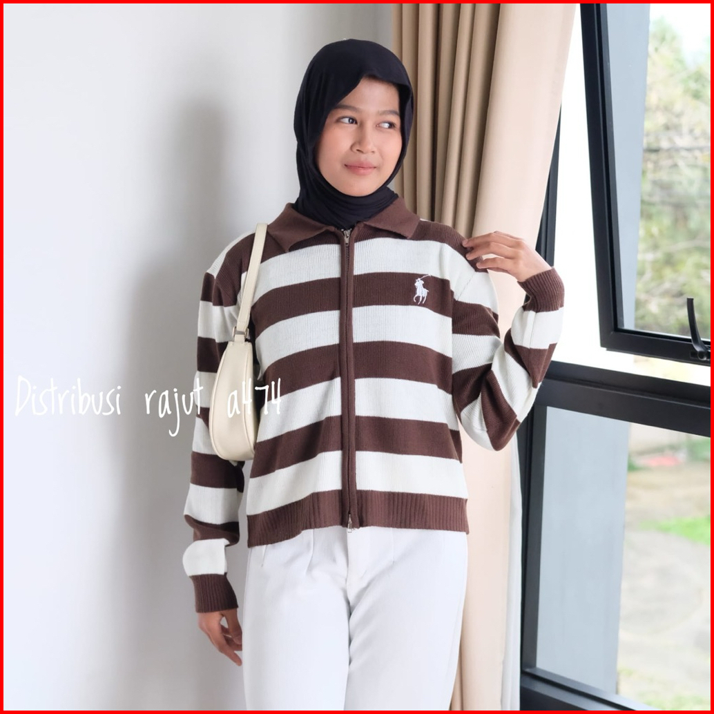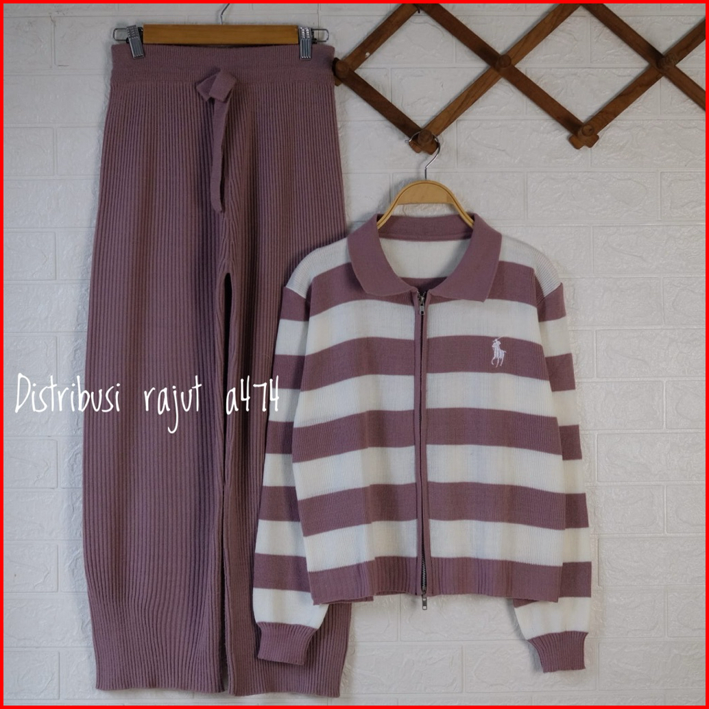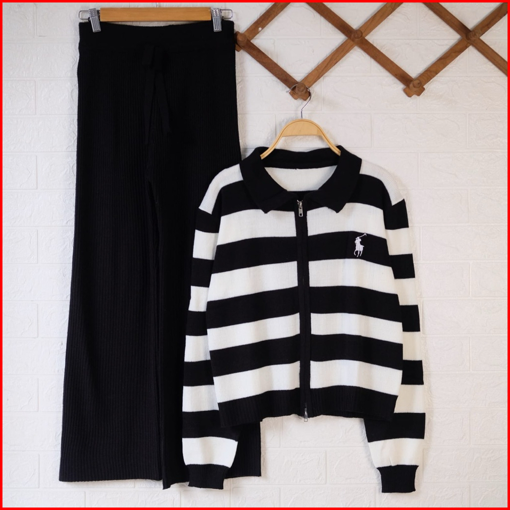 Oneset Fitrianti Sweater Rajut Zipper Setelan Celana Kulot Rajut Wanita