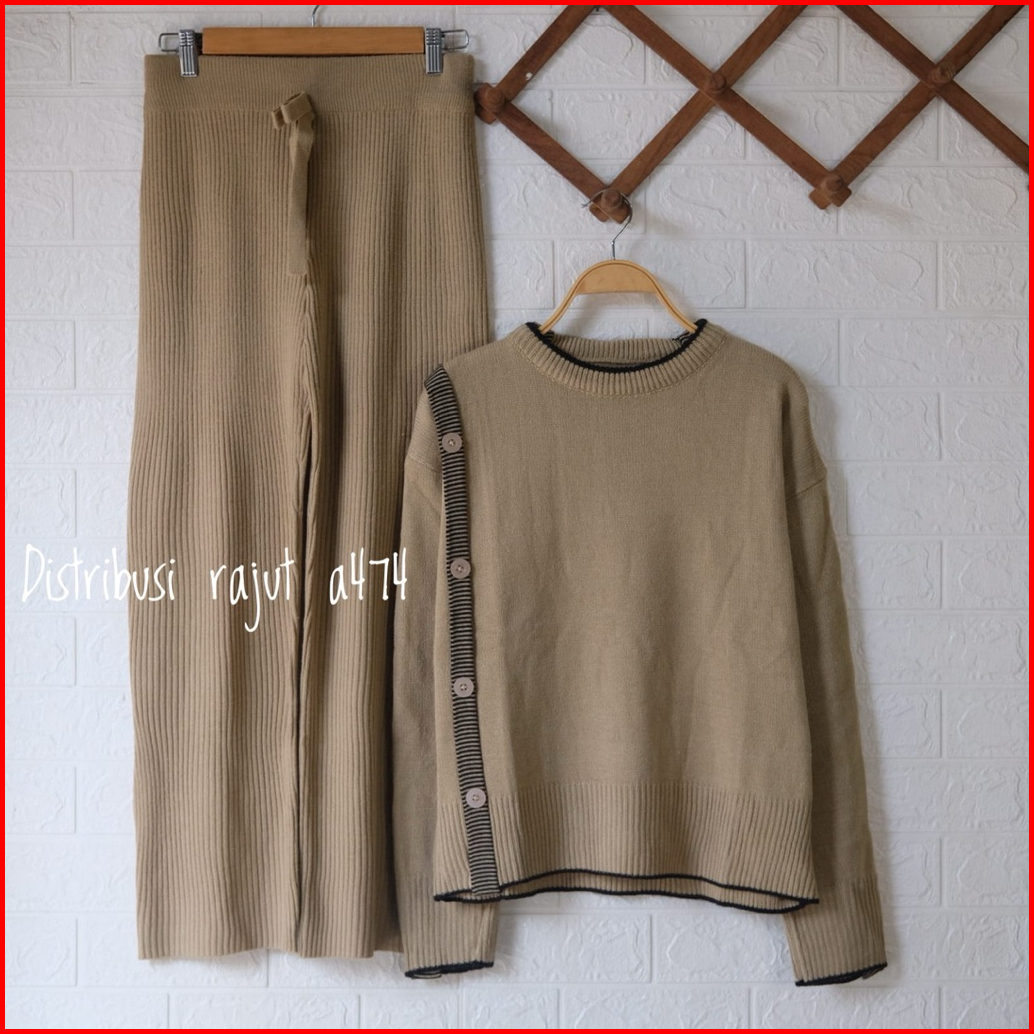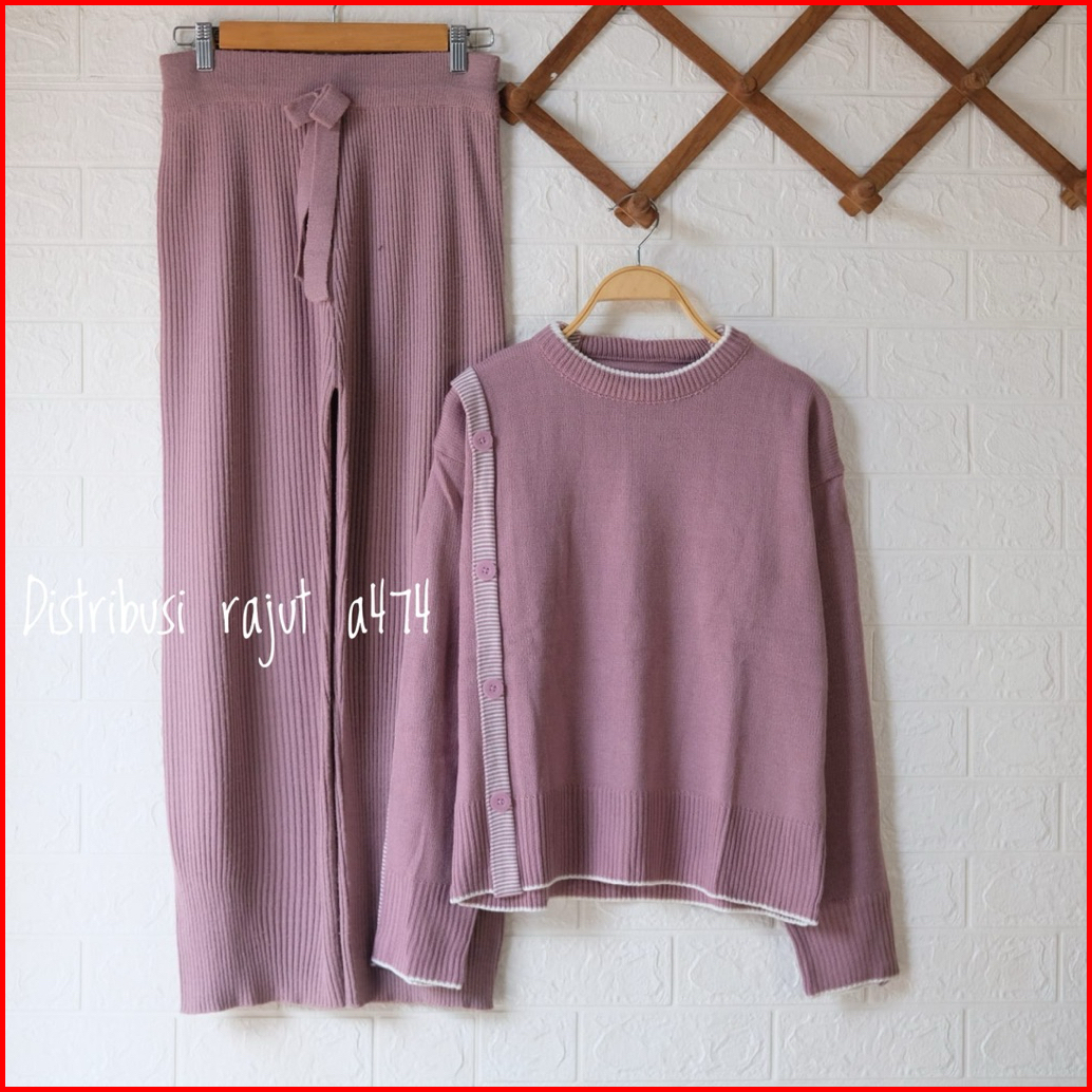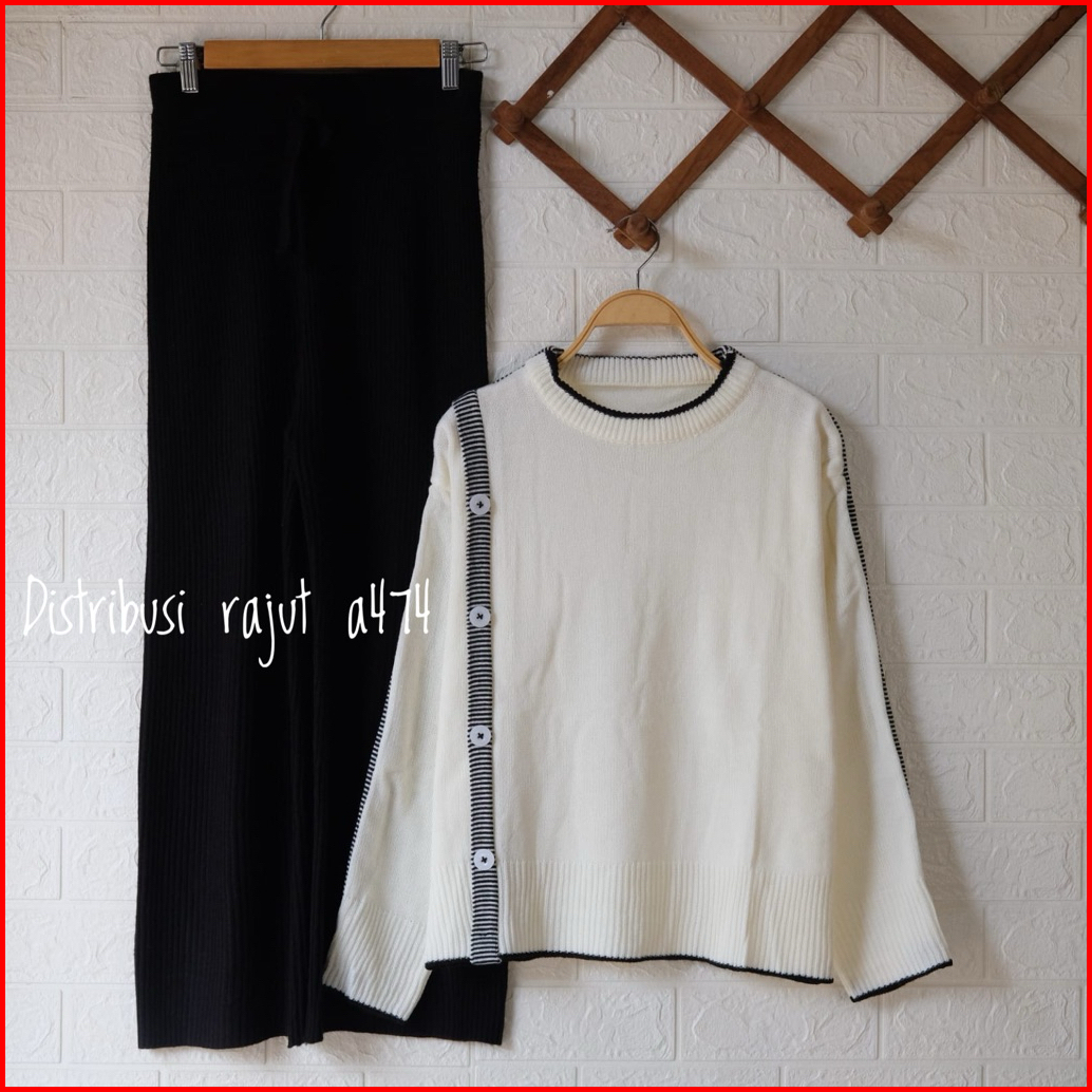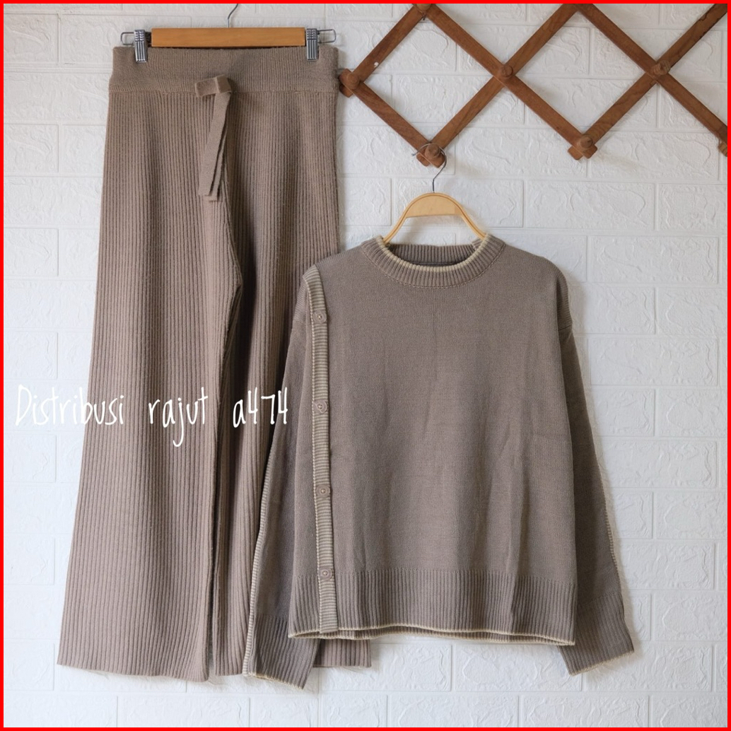 Oneset Anele Sweater Rajut Setelan Celana Kulot Rajut Wanita