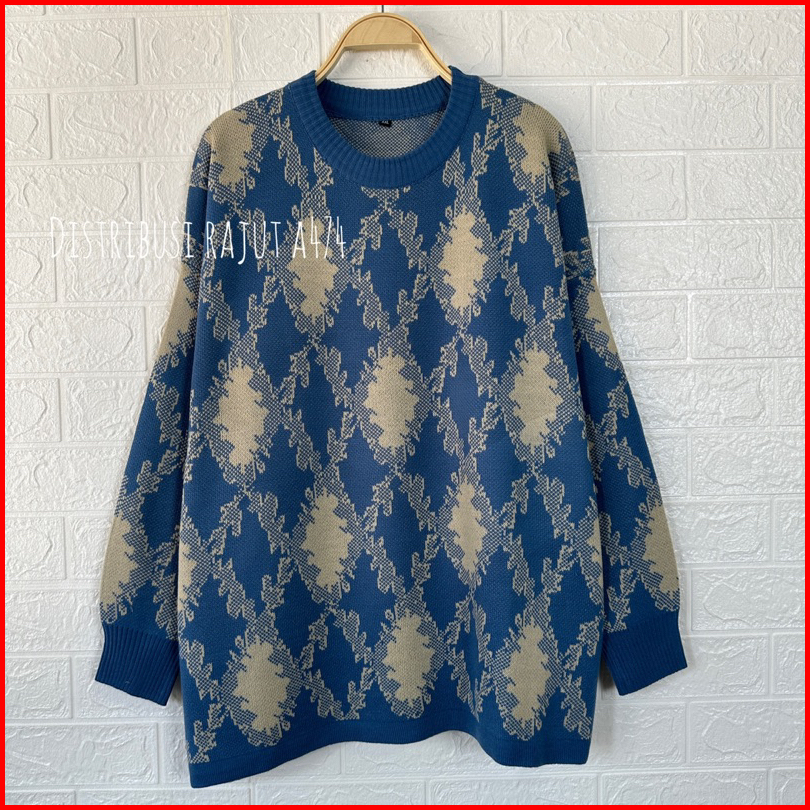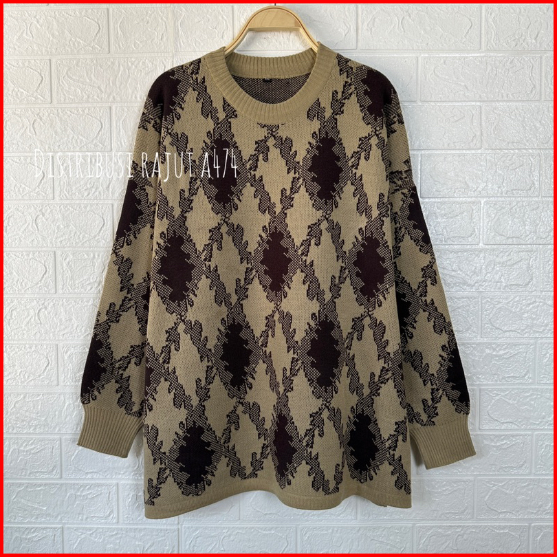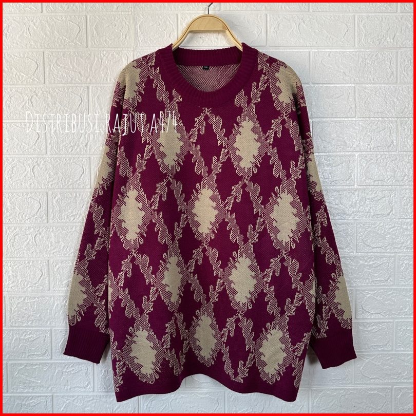 Ayunda Big Size Sweater Rajut Motif Vintage Wanita Korea