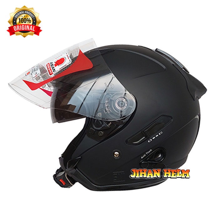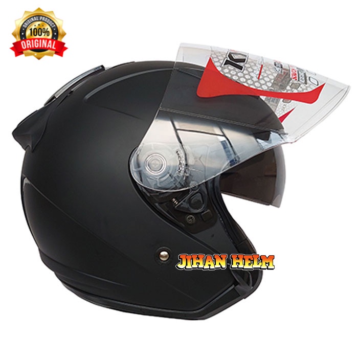 Helm Half Face KYT Galaxy Slide Flat R Solid Black Metalic Metallic Double Visor Hitam Polos Metalik Glossy Ori Original
