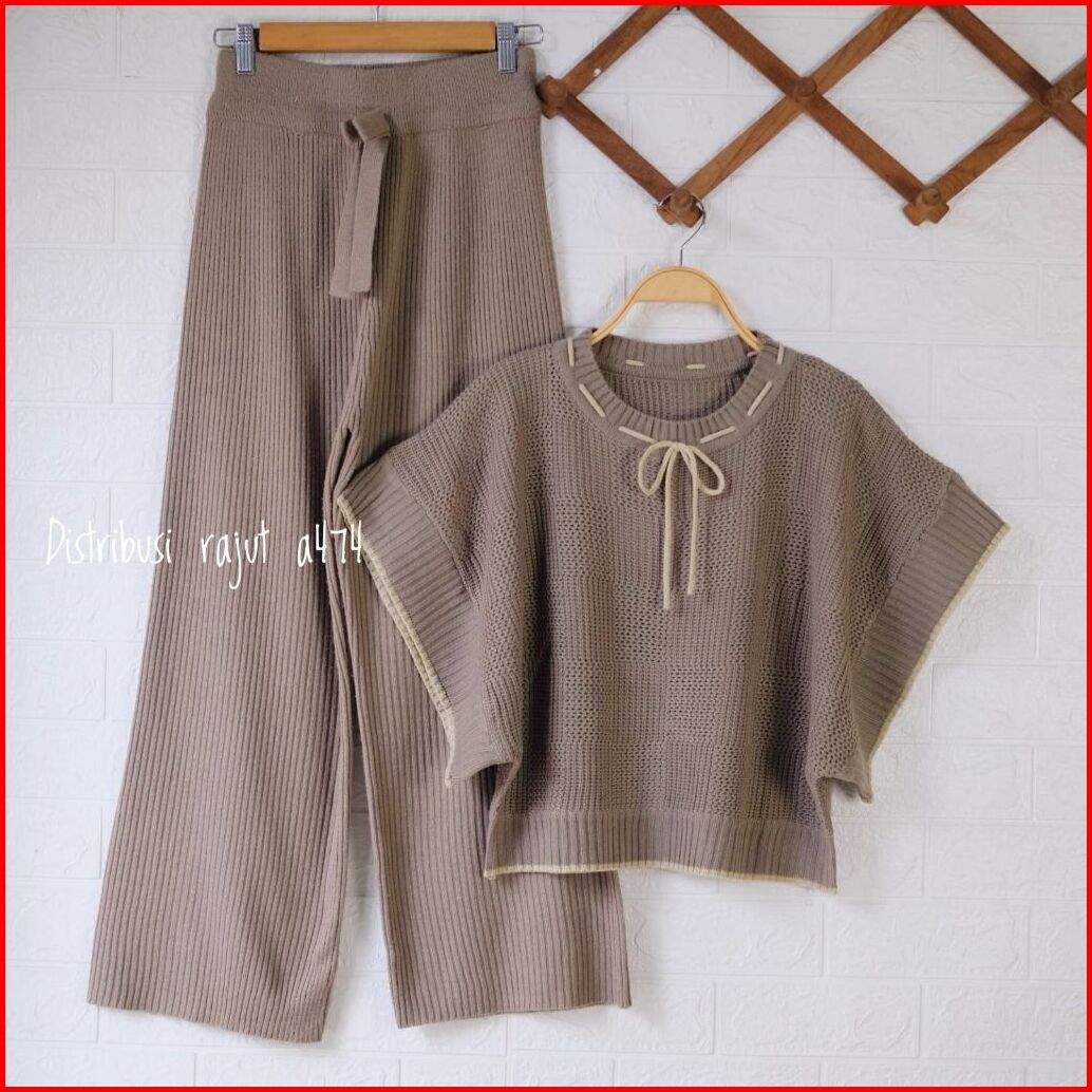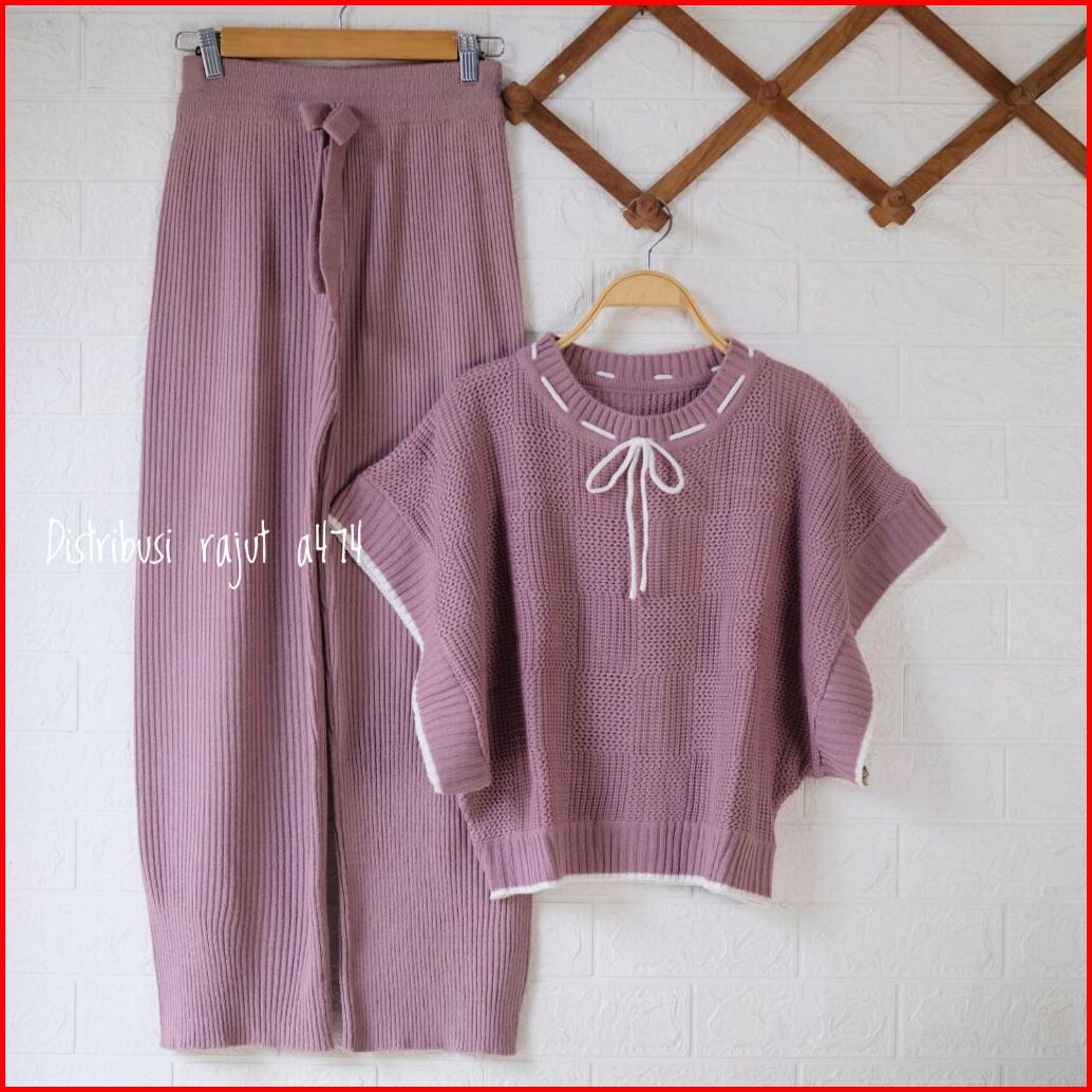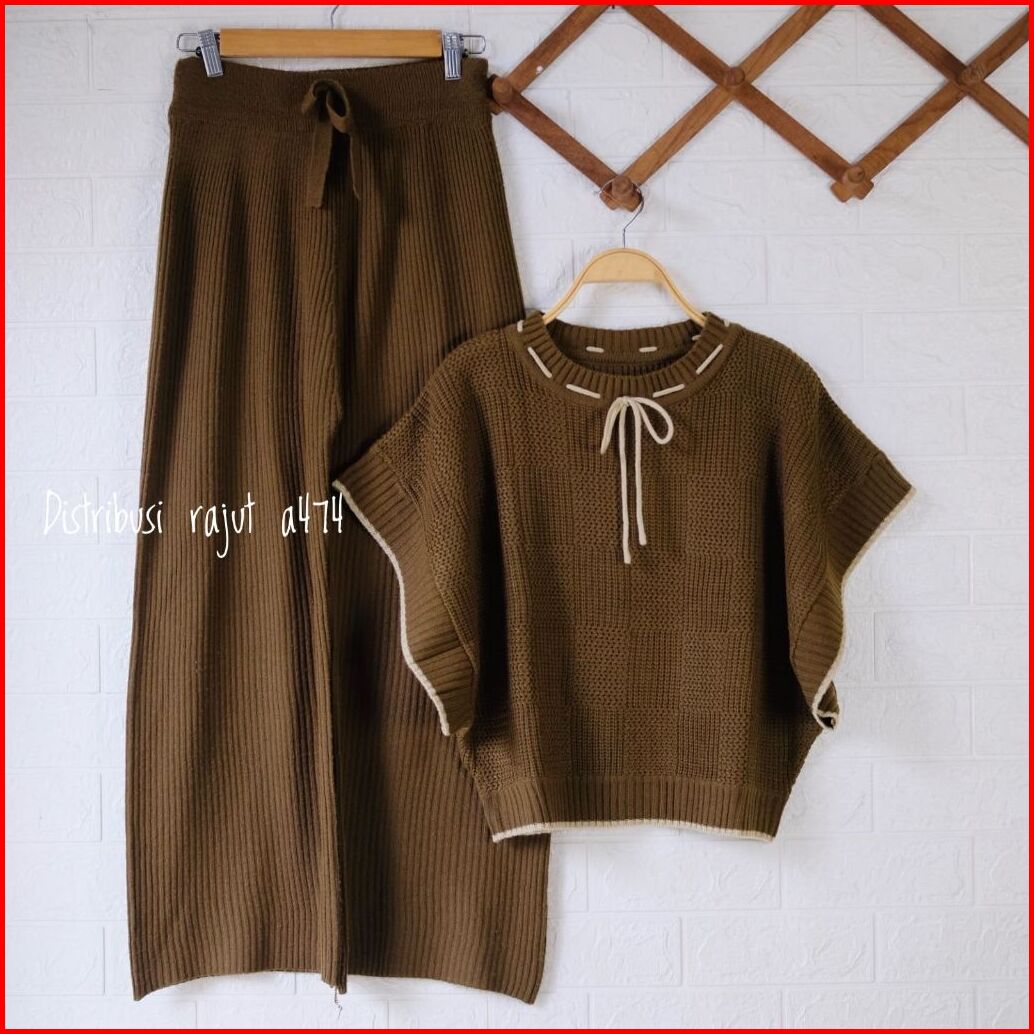 Oneset Berliana Vest Rompi Rajut Tali Kerah Setelan Celana Kulot Rok Kancing Rajut Wanita