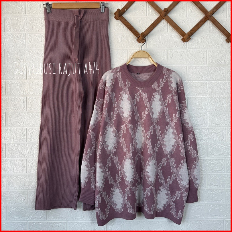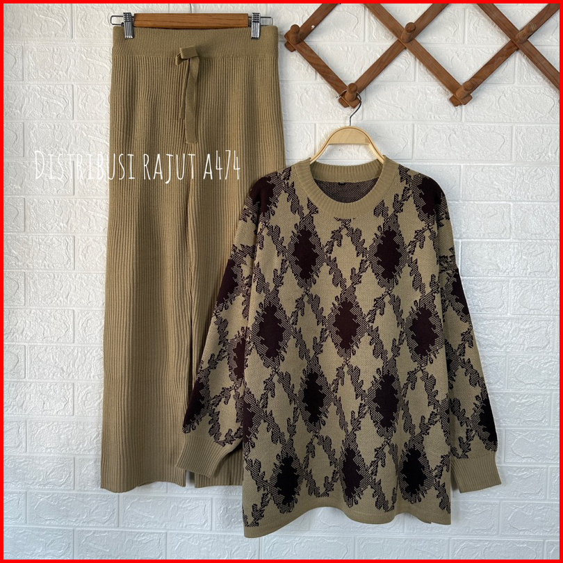 Oneset Sweater Rajut Ayunda Setelan Celana Rajut Kulot