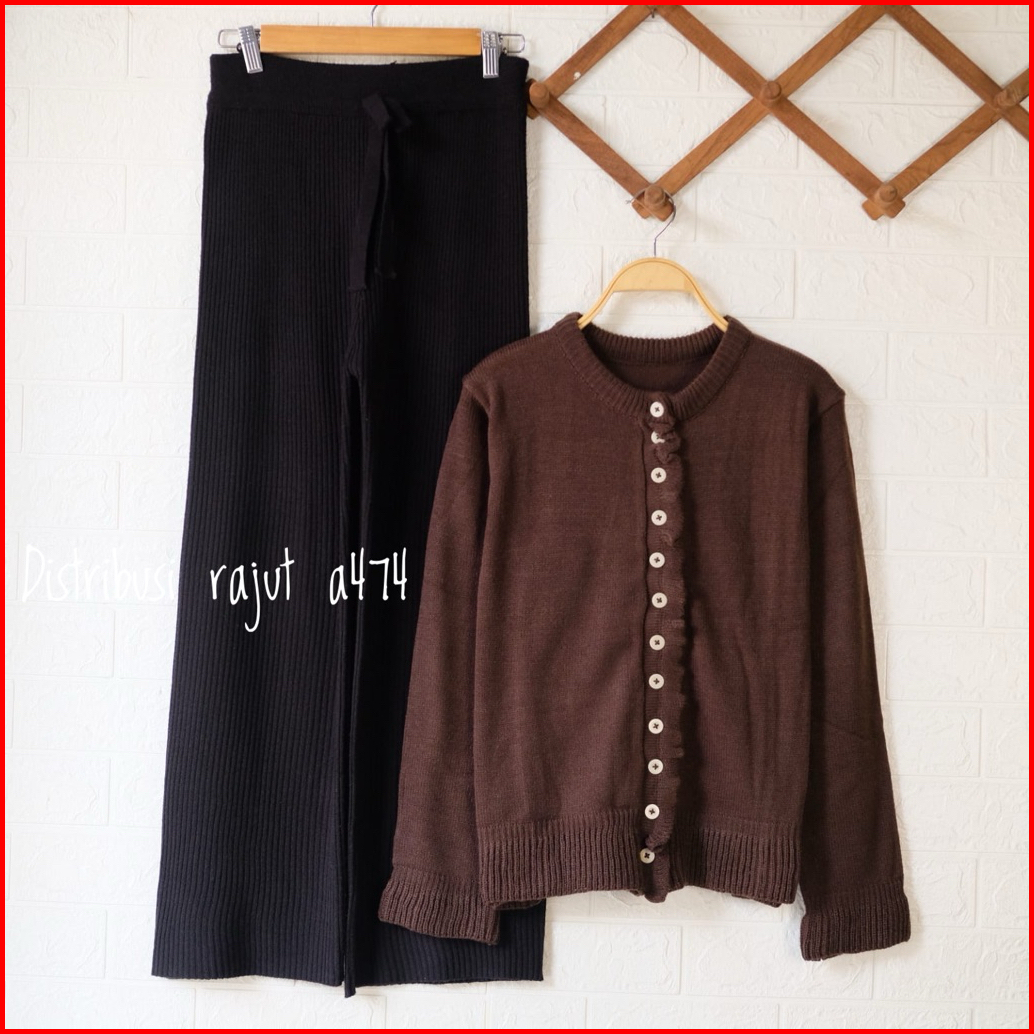 Oneset Dominika Cardigan Rajut Polos Setelan Celana Kulot Rajut Wanita