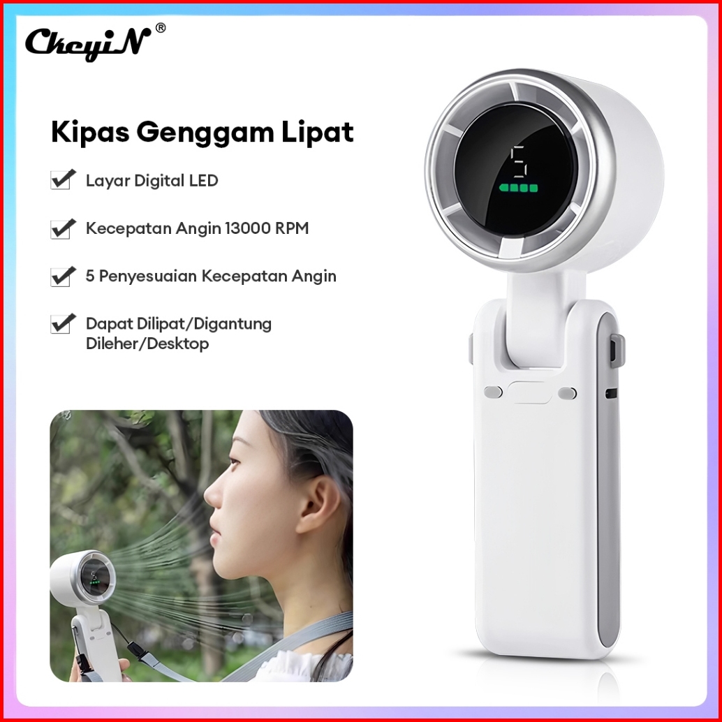 Ckeyin Kecepatan Tinggi Portabel Kipas Mini Kipas Udara Dingin Led Digital Display Kipas Tangan