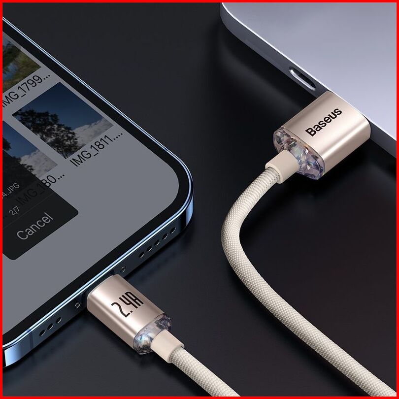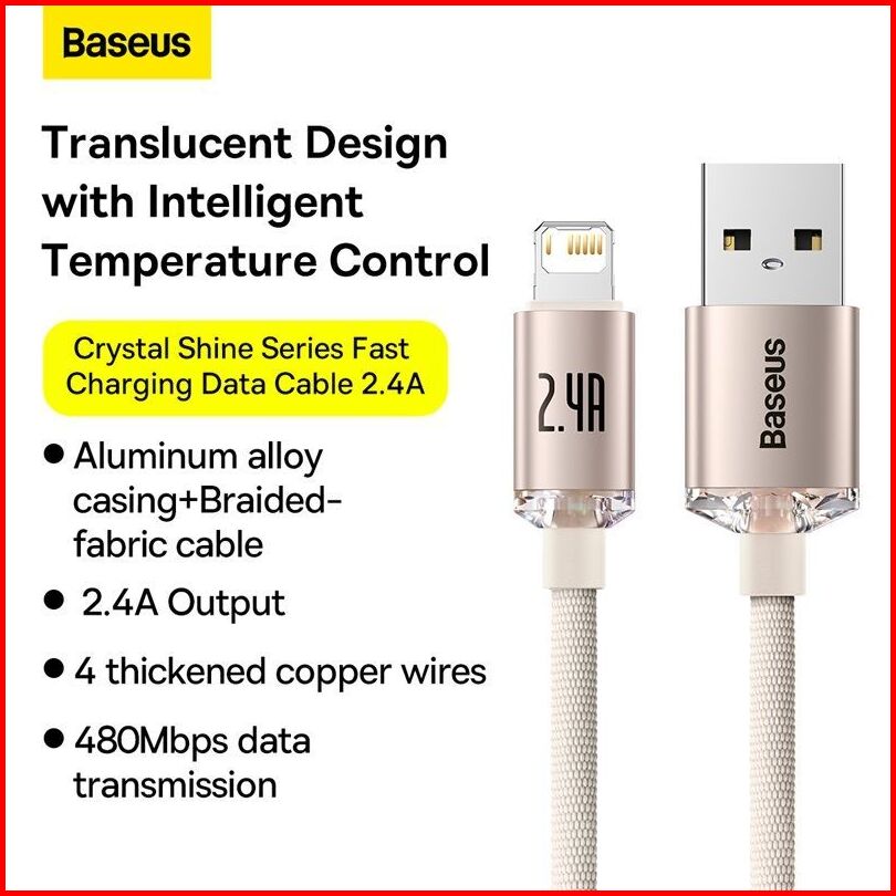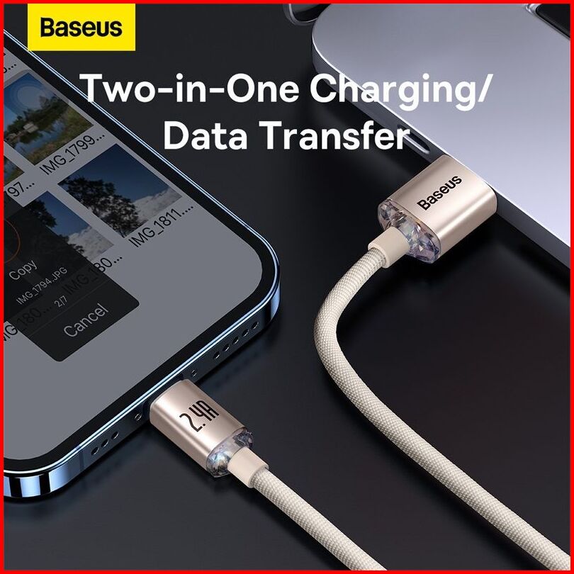 Baseus Cable Data Crystal Shine Series Usb To Ip 2.4a Fast Charging Kabel 1.2m 2m