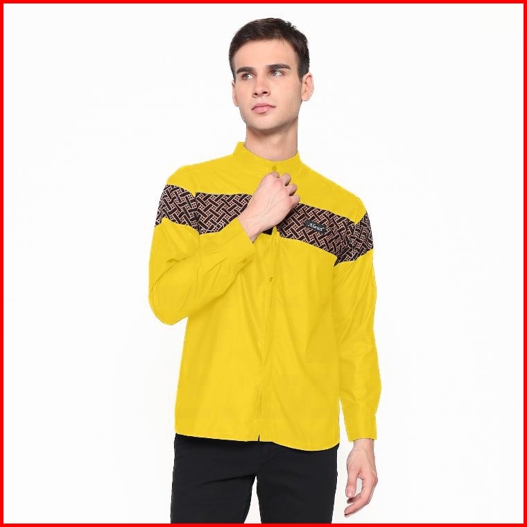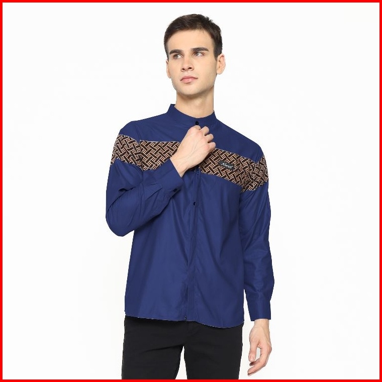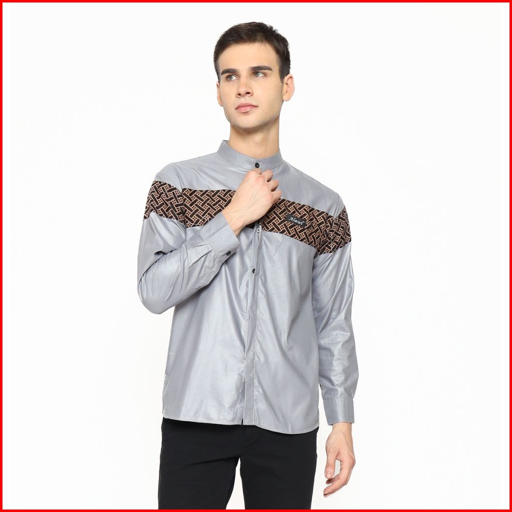 Alawi - Baju Koko Pria Lengan Panjang Motif Qinang Batik Warna Coksu - M L Xl