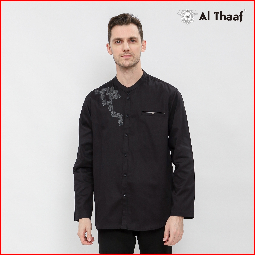 Althaaf Baju Koko Katun Tangan Panjang - 0223 - Hitam Putih