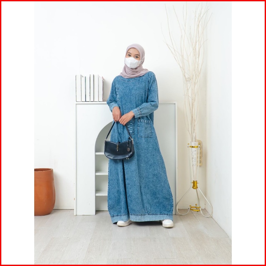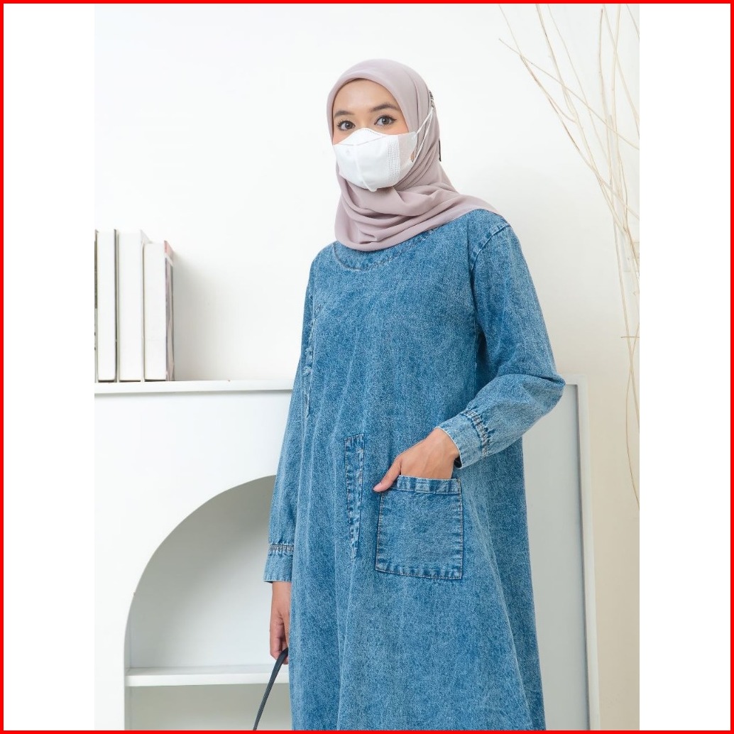 Addikri Store - Gamis Briska Jeans Wanita - Pakaian Muslimah - Dress Kekinian Terbaru
