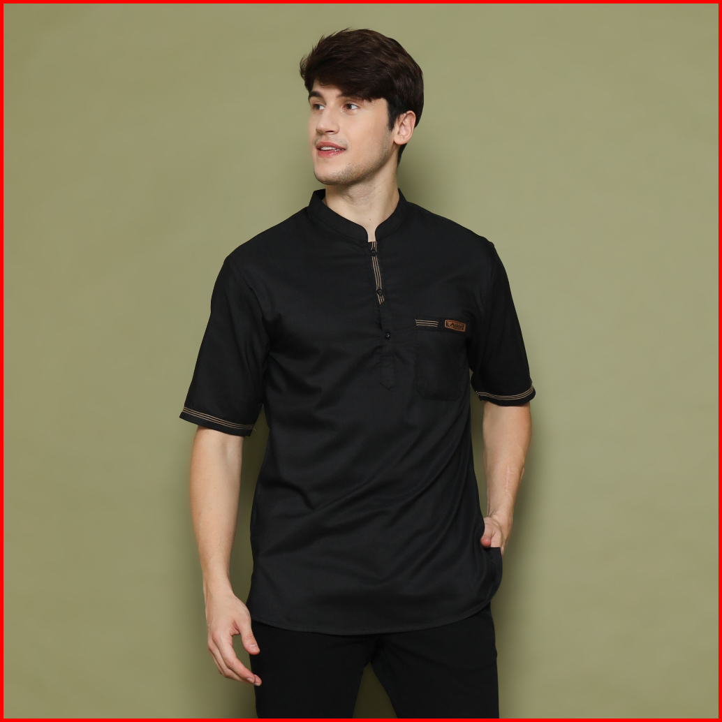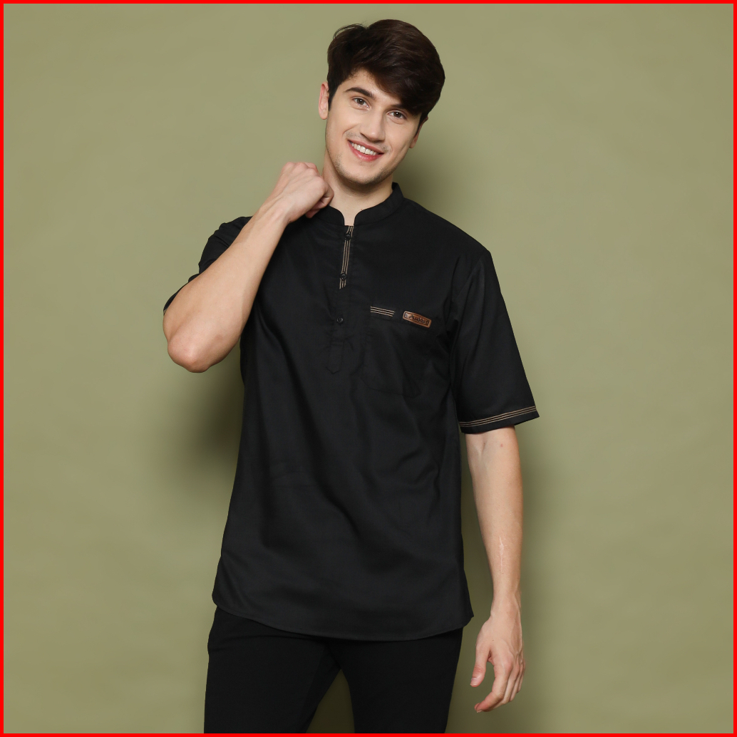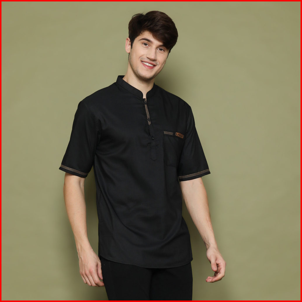 Alawi - Baju Koko Asakhi Kurta Dewasa Premium Lengan Pendek Sakka Warna Hitam