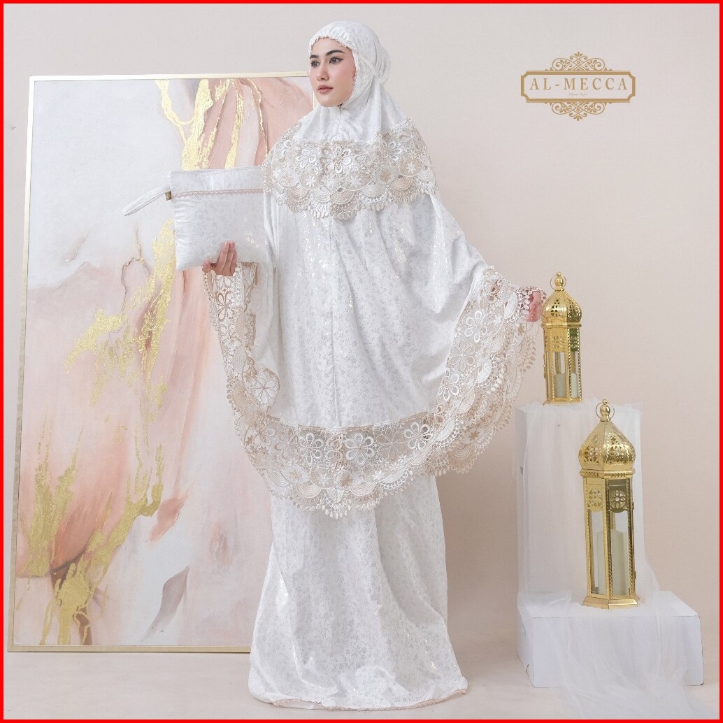 Almecca - Mukena Dewasa Poil Katun Paris Renda Kalung Mewah Jumbo