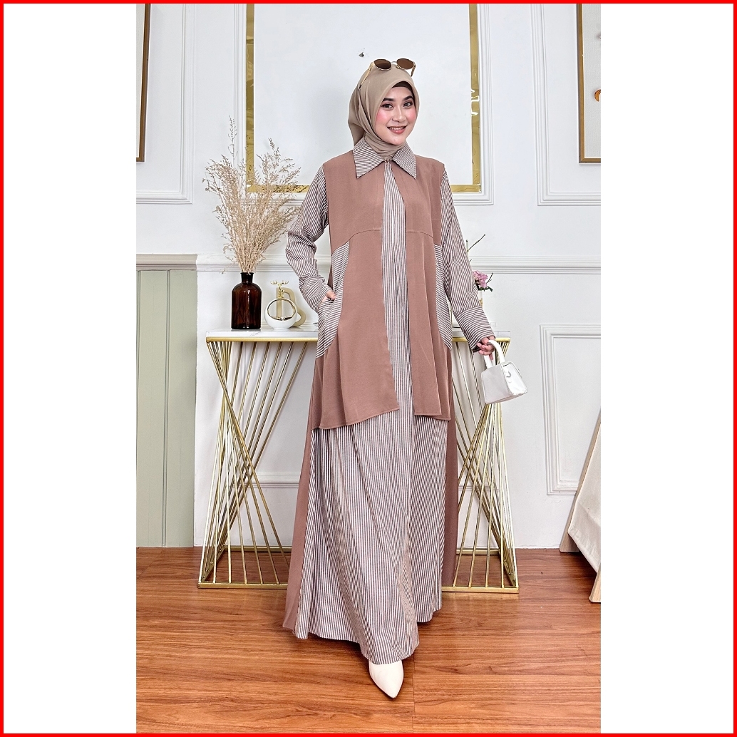 Amie X Poppy Salsabilla Dress Muslim Korean Style Gamis Polos Kombinasi Stripe Size M Xl Xxl Jumbo