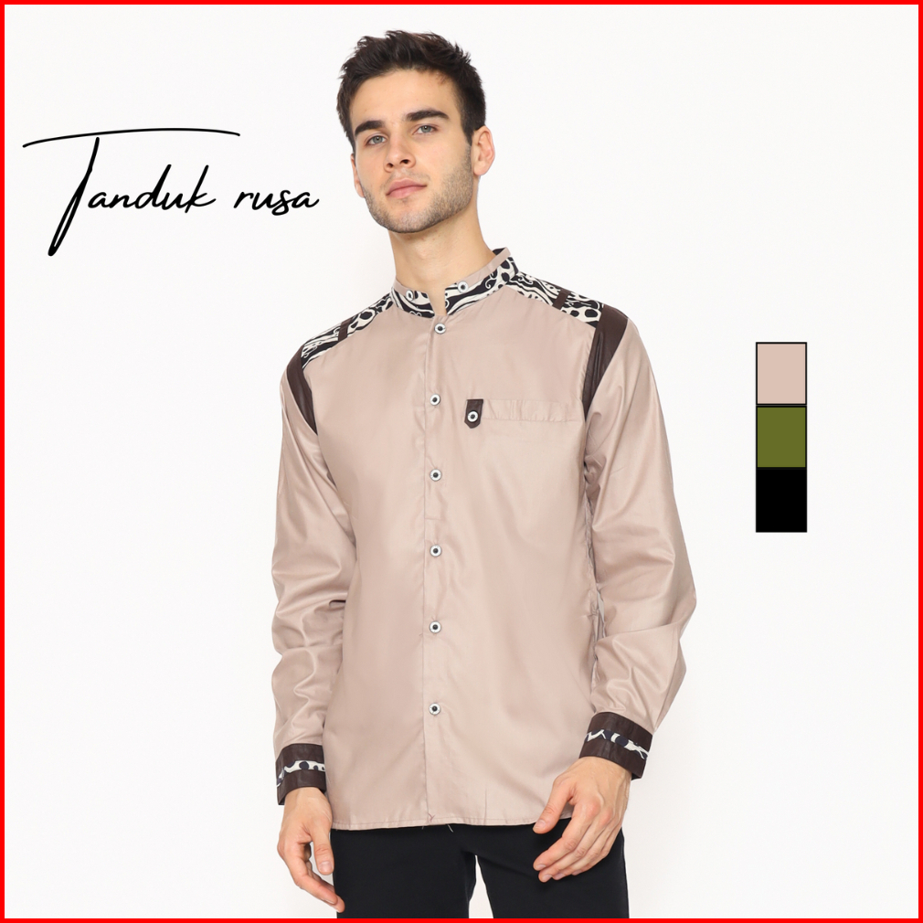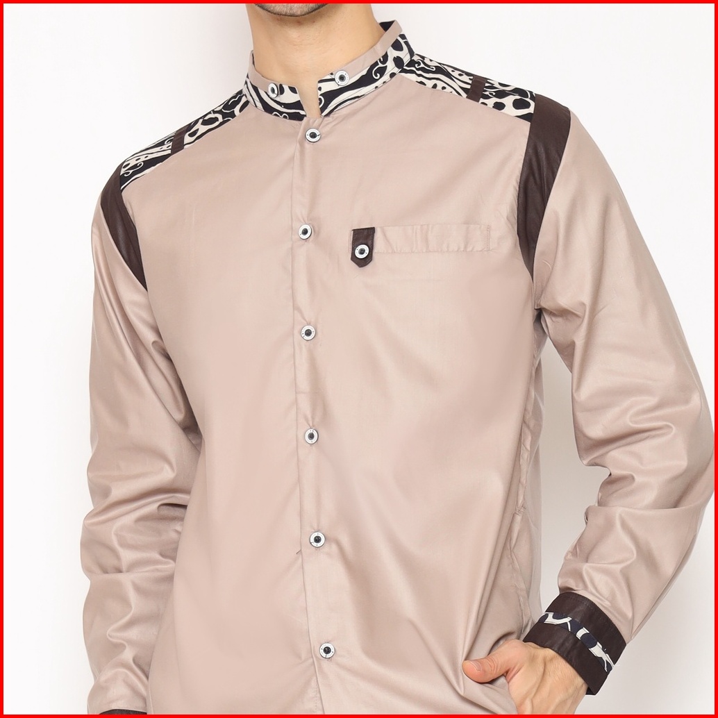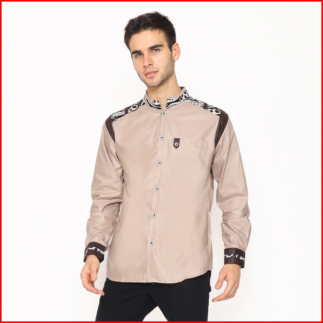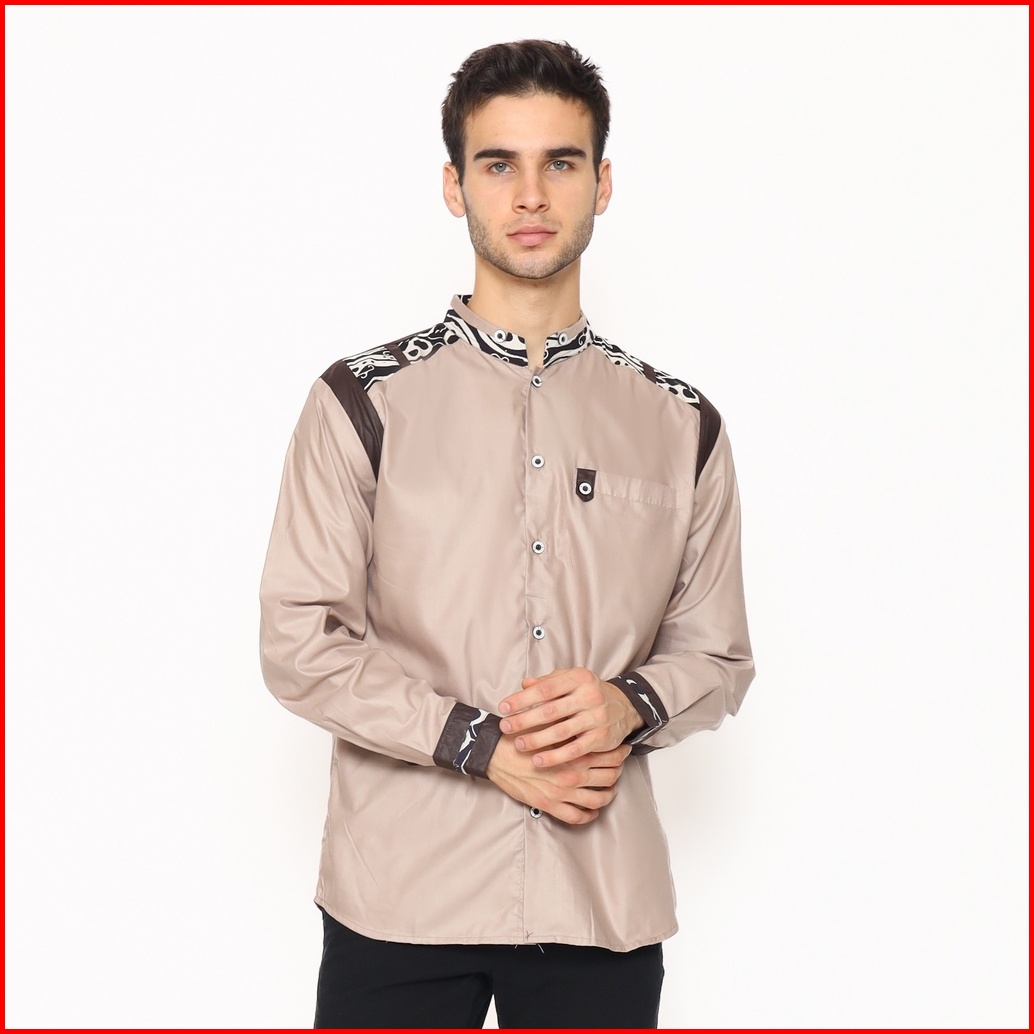 Alawi - Baju Koko Pria Muslim Dewasa Lengan Panjang Warna Coksu Kombinasi Batik - M L Xl