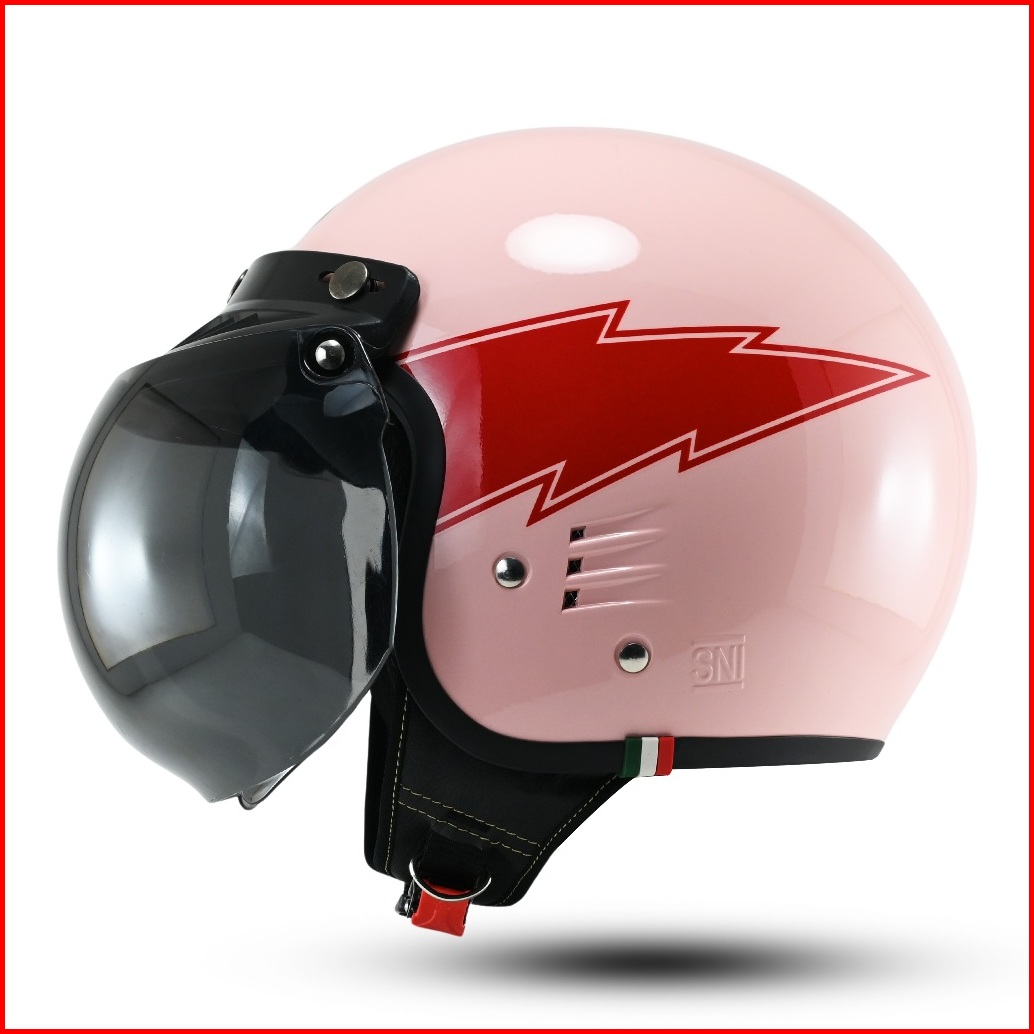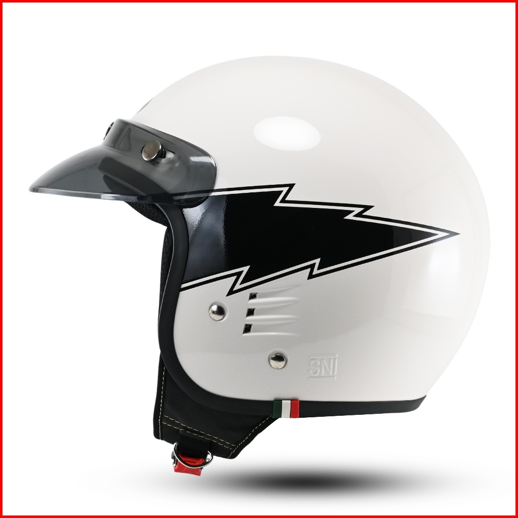 Helm Bogo Classic Dewasa Retro Motif Petir Original Motorcycle Hds Cepol Wanita Pria Sni Pet Warna