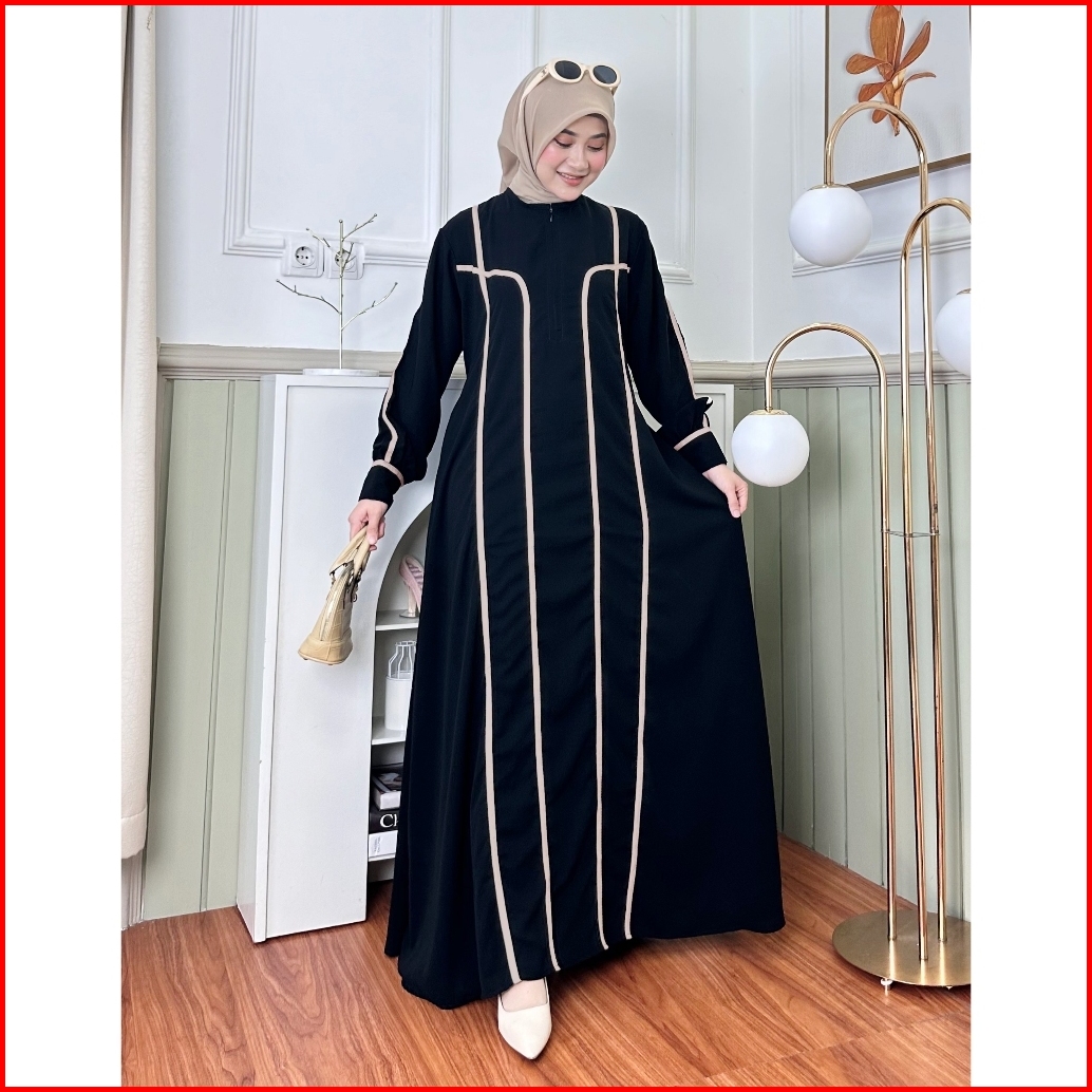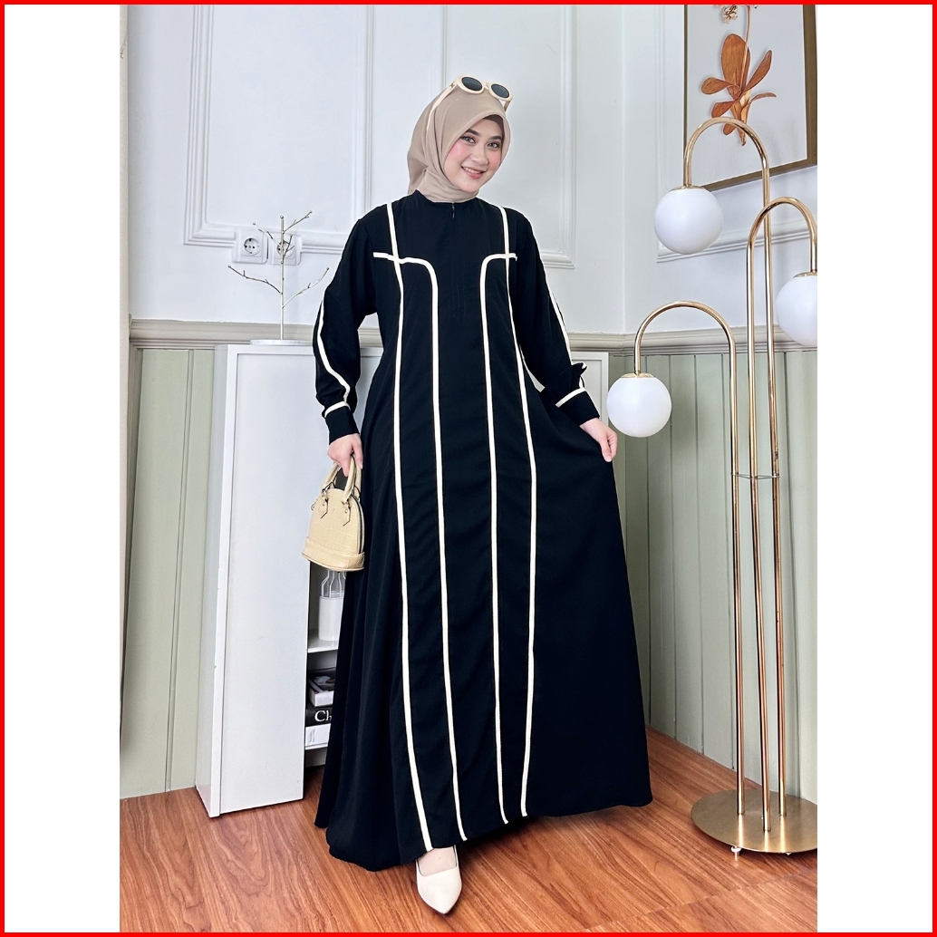 Zareena Dress Hitam Bahan Jetblack Variasi Stripe Size S M L Xl Gamis Casual Wanita Muslim 2025