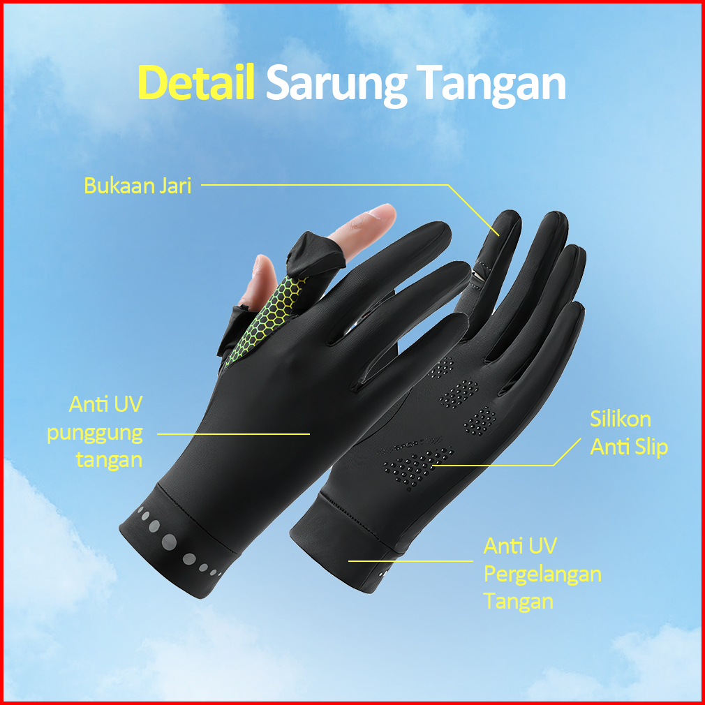 Kaikki Sarung Tangan Musim Panas Anti Uv Anti Slip Untuk Pria Wanita Ideal Buat Mengemudi Bersepeda Memancing. Dilengkap