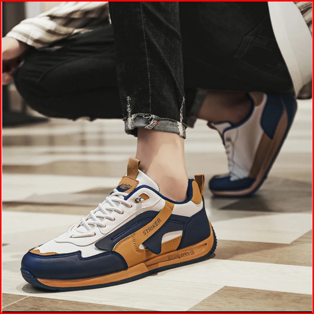 Luckyfanstore - Sneakers Striker Putih Cokelat Sepatu Kasual Sport Pria Wanita - E26