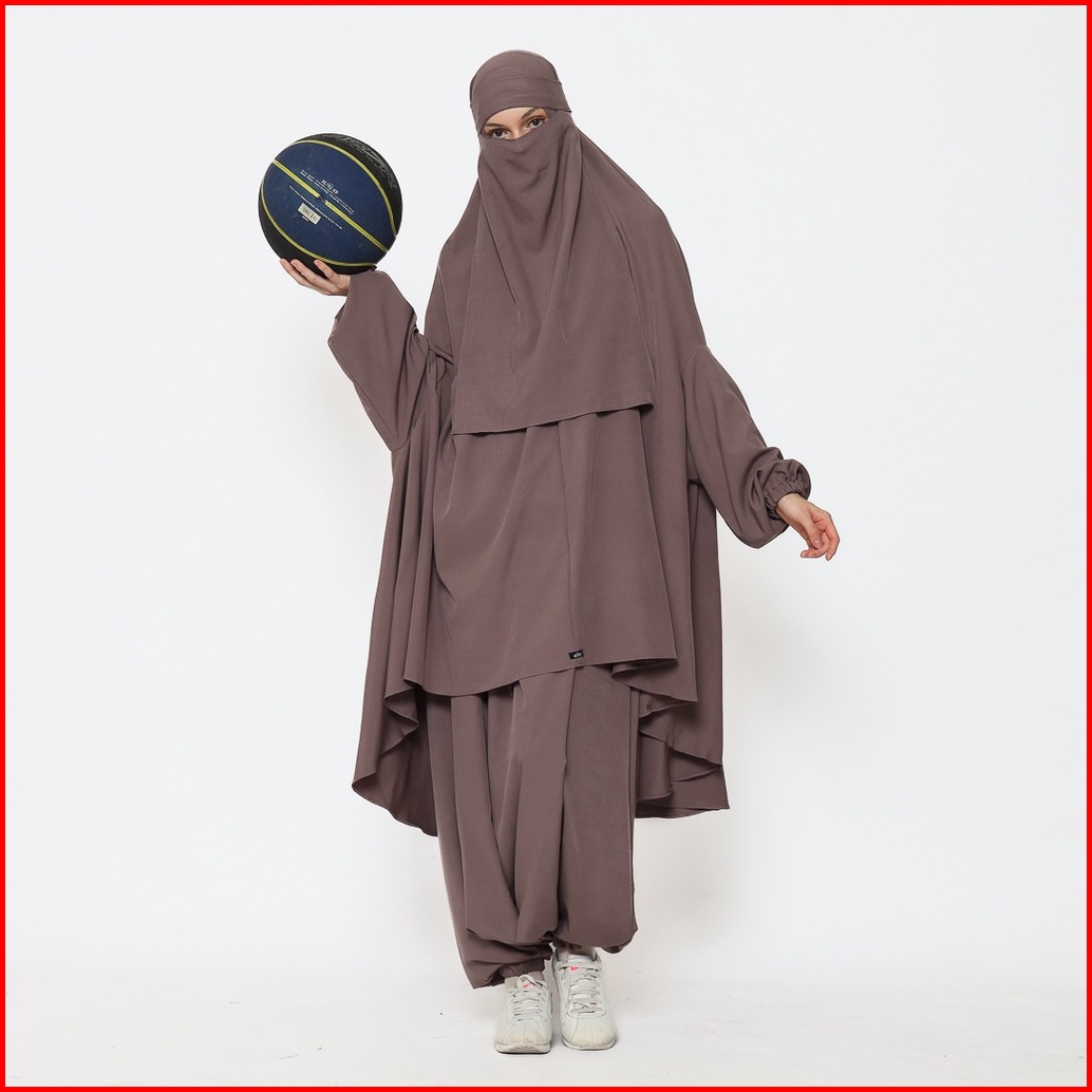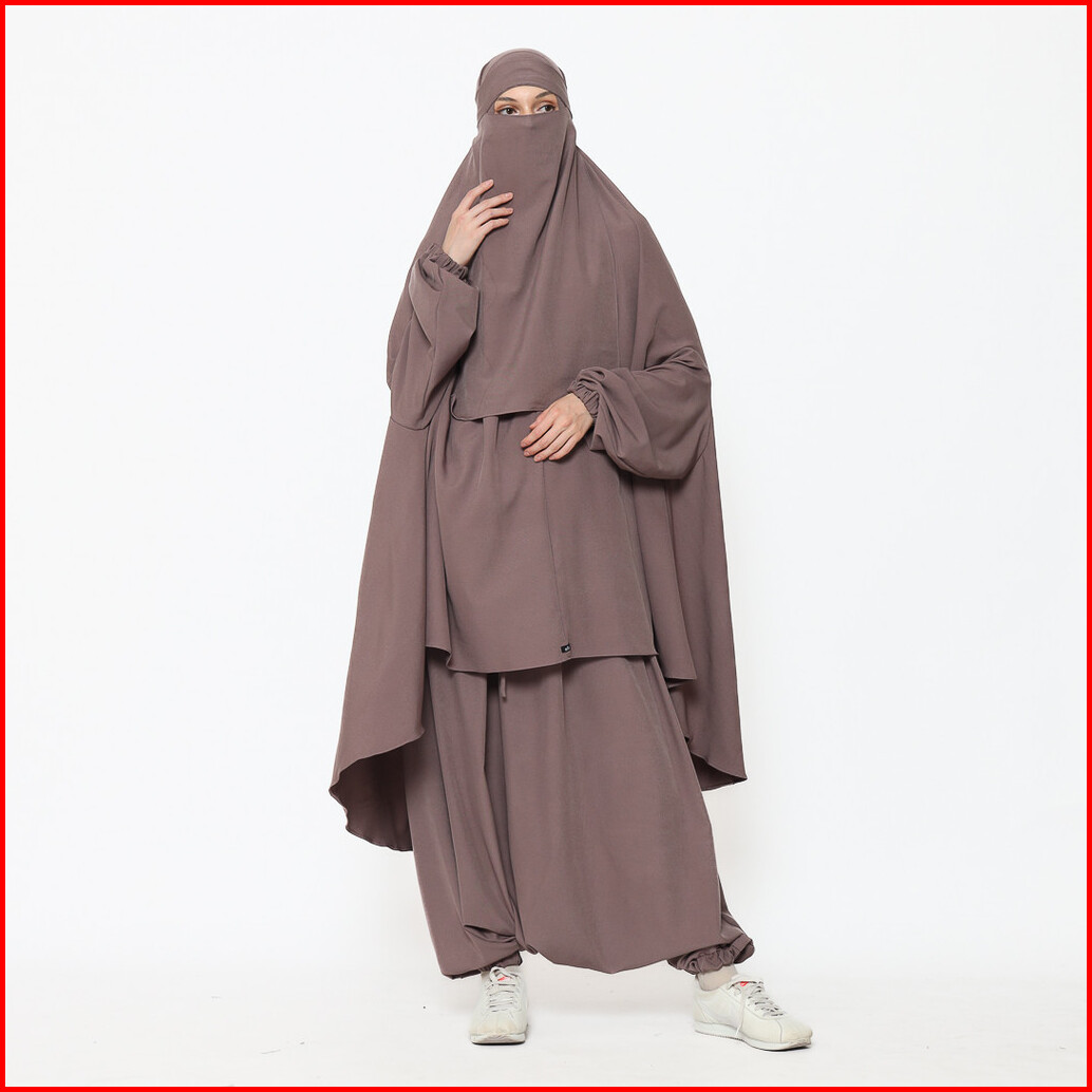 Allev Risha Set Sirwal Akhwat Dan Khimar Lengan Serta Cadar - Mocca