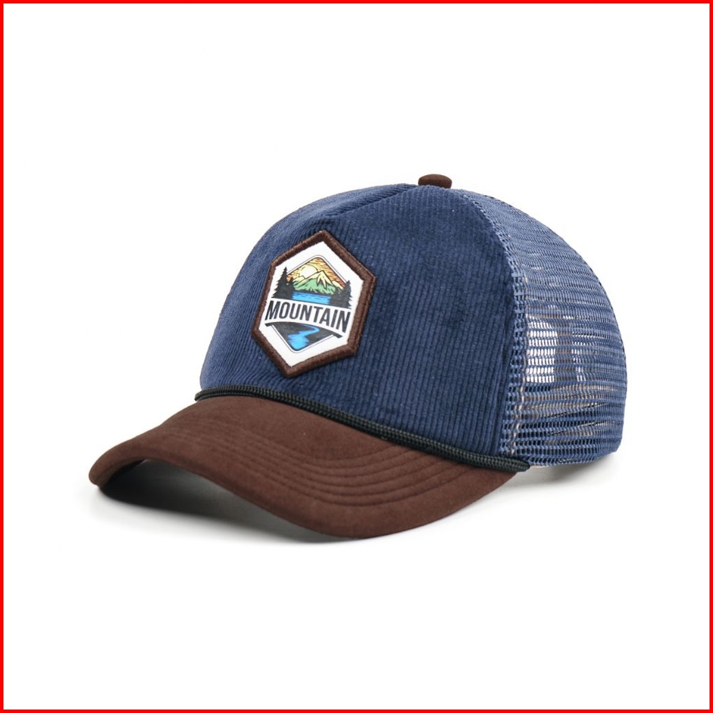 Topi Wankbay Mountain Trucker Corduroy Distro Aplikasi Suede Topi Jaring Pria