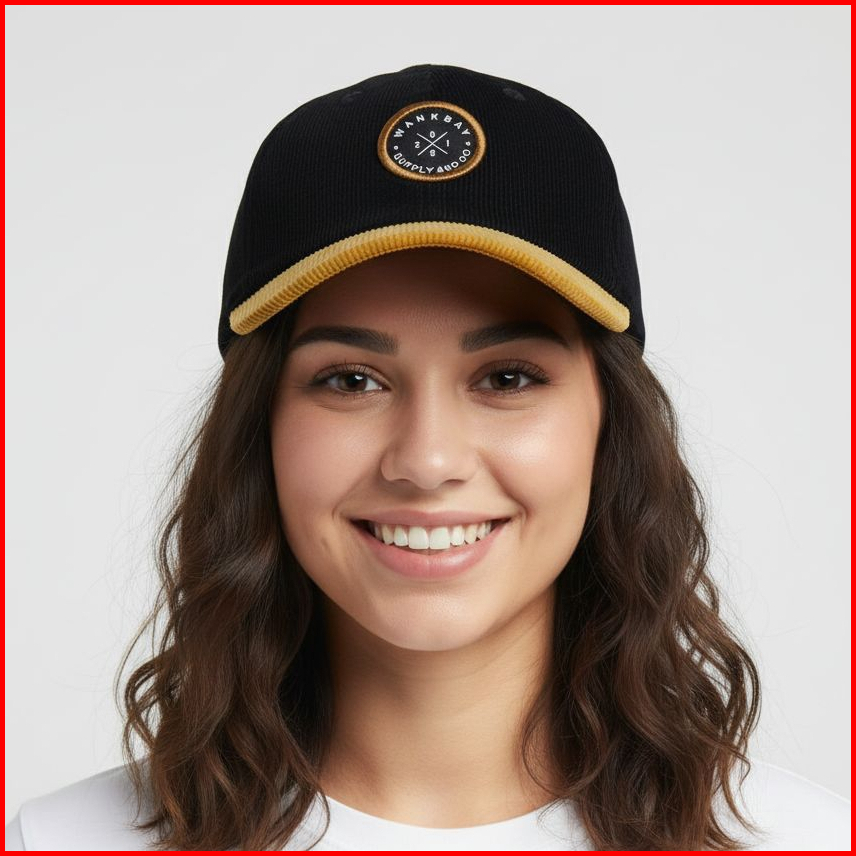 Wankbay Topi Baseball Distro Dewasa Corduroy Black Mustard
