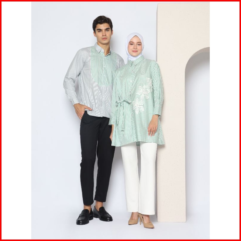Koleksi Couple 100 Katun Stripe Elegan Aldebaran - Hijau