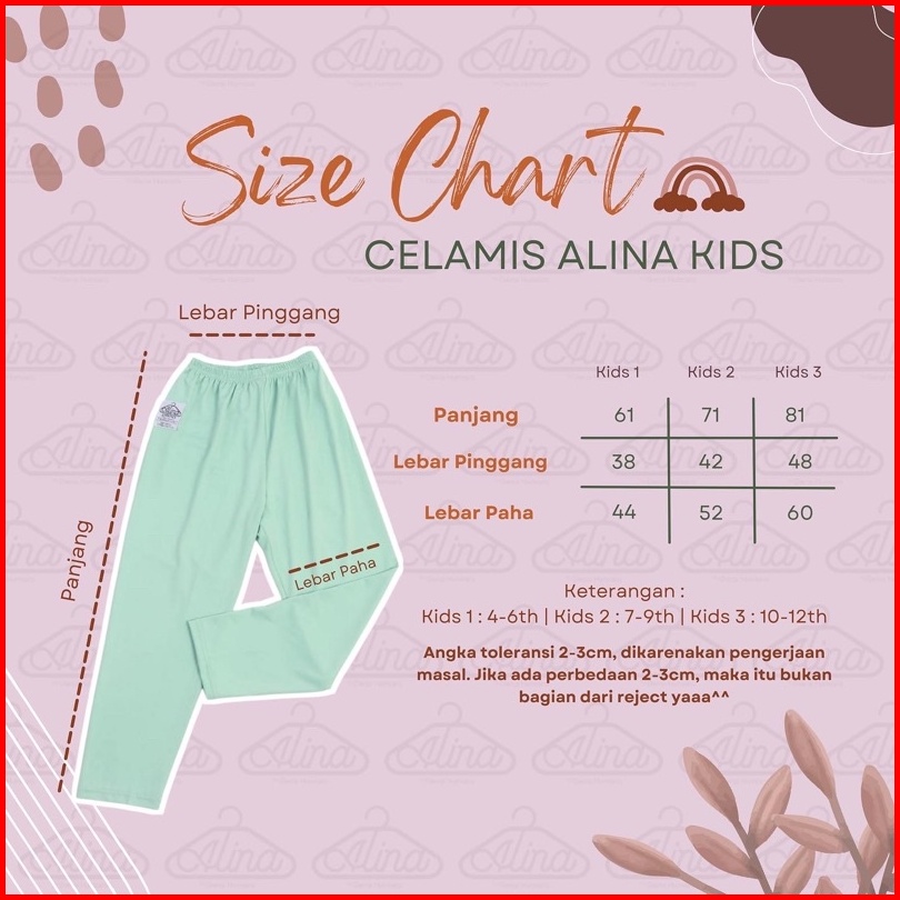 Alina - Celamis Anak Size 1 4 Sampai 6 Tahun