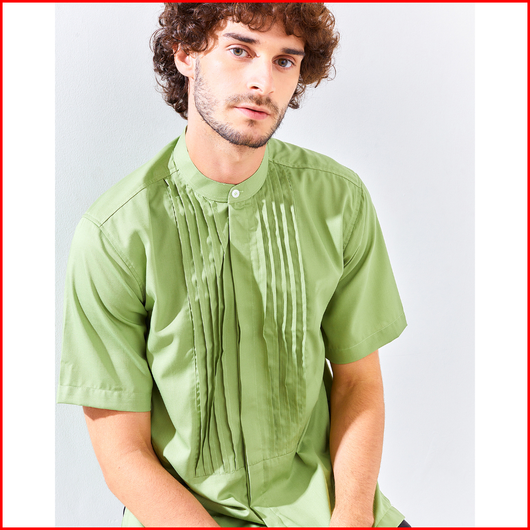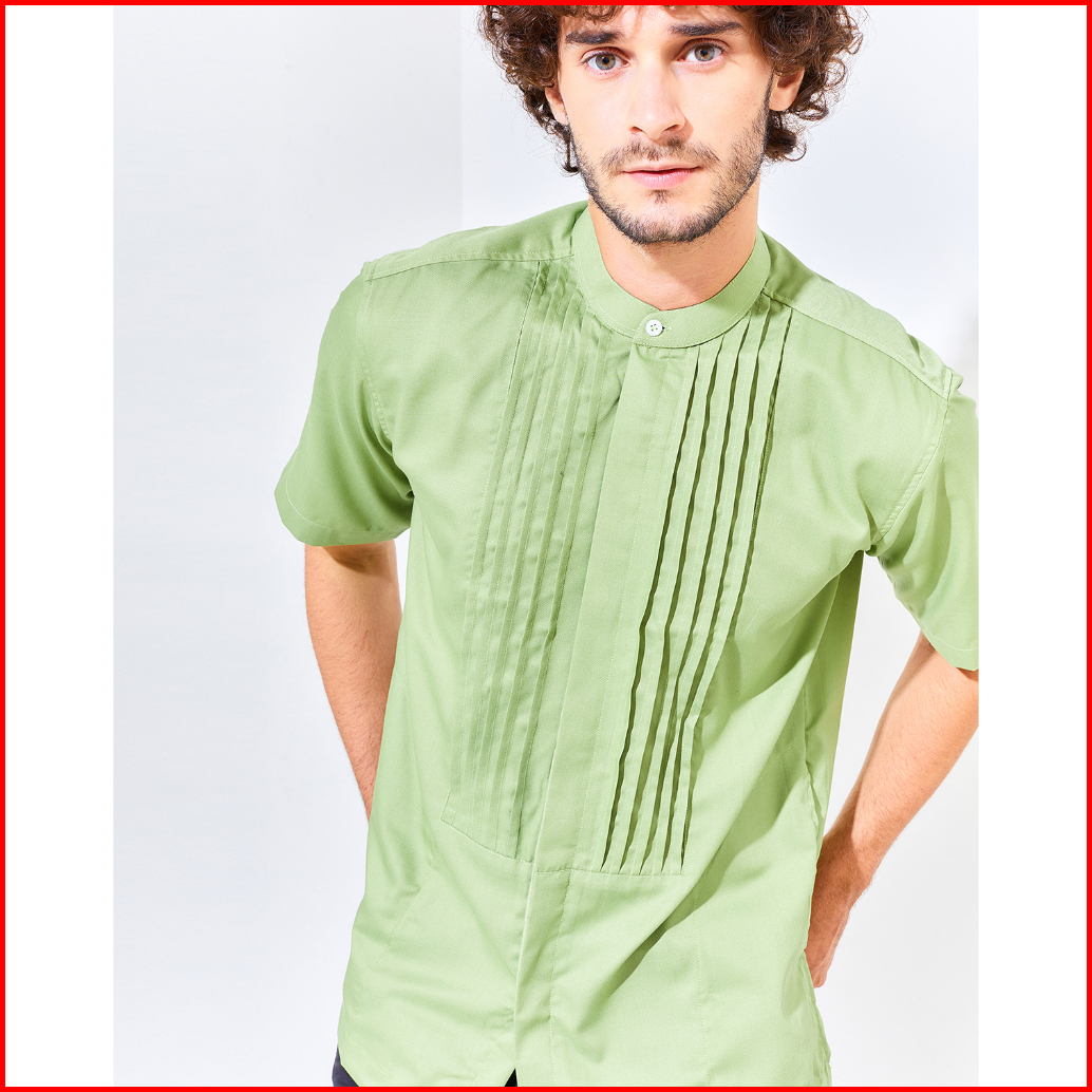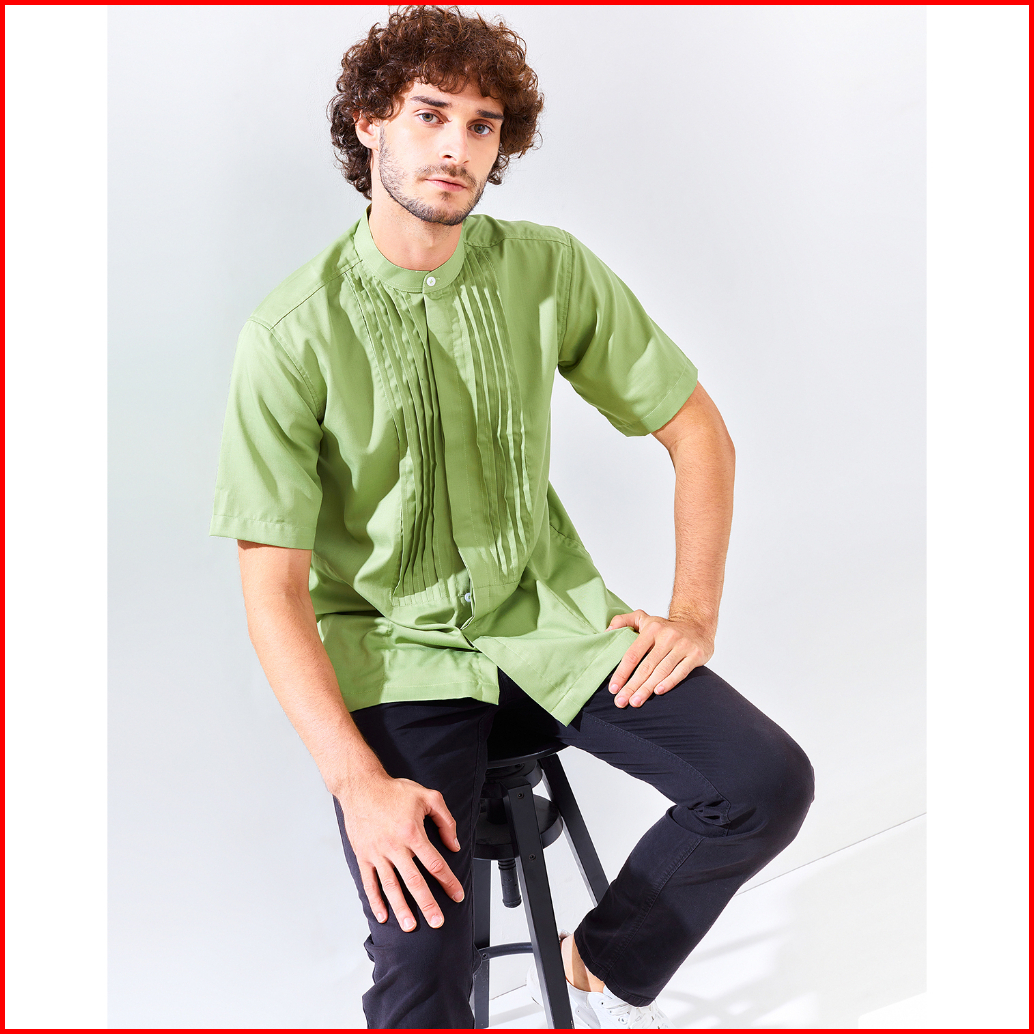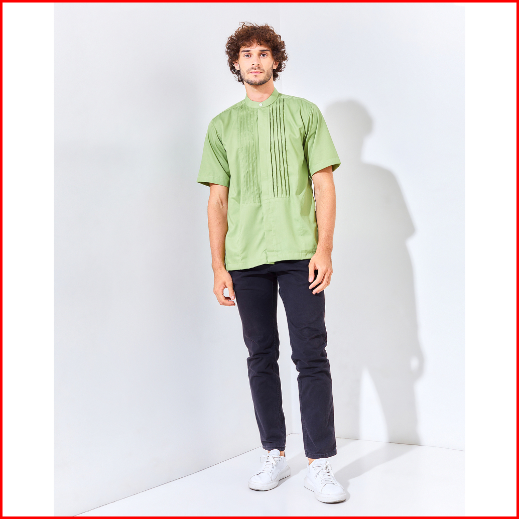 Aldebaran-kemeja Koko Lengan Pendek Hijau Lime Katun