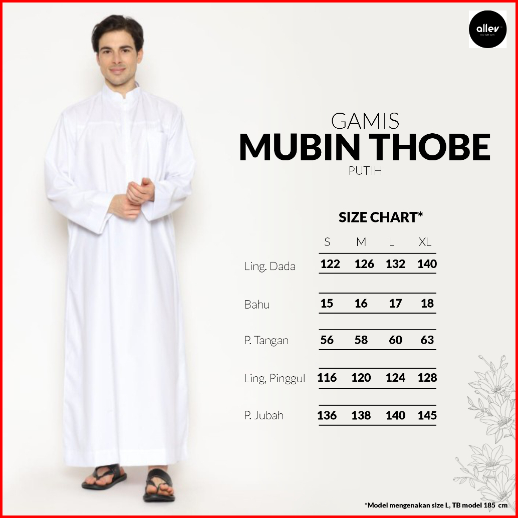 Gamis Pria Dewasa Mubin Thobe Putih Kekinian Jubah Baju Muslim Bahan Premium Allev