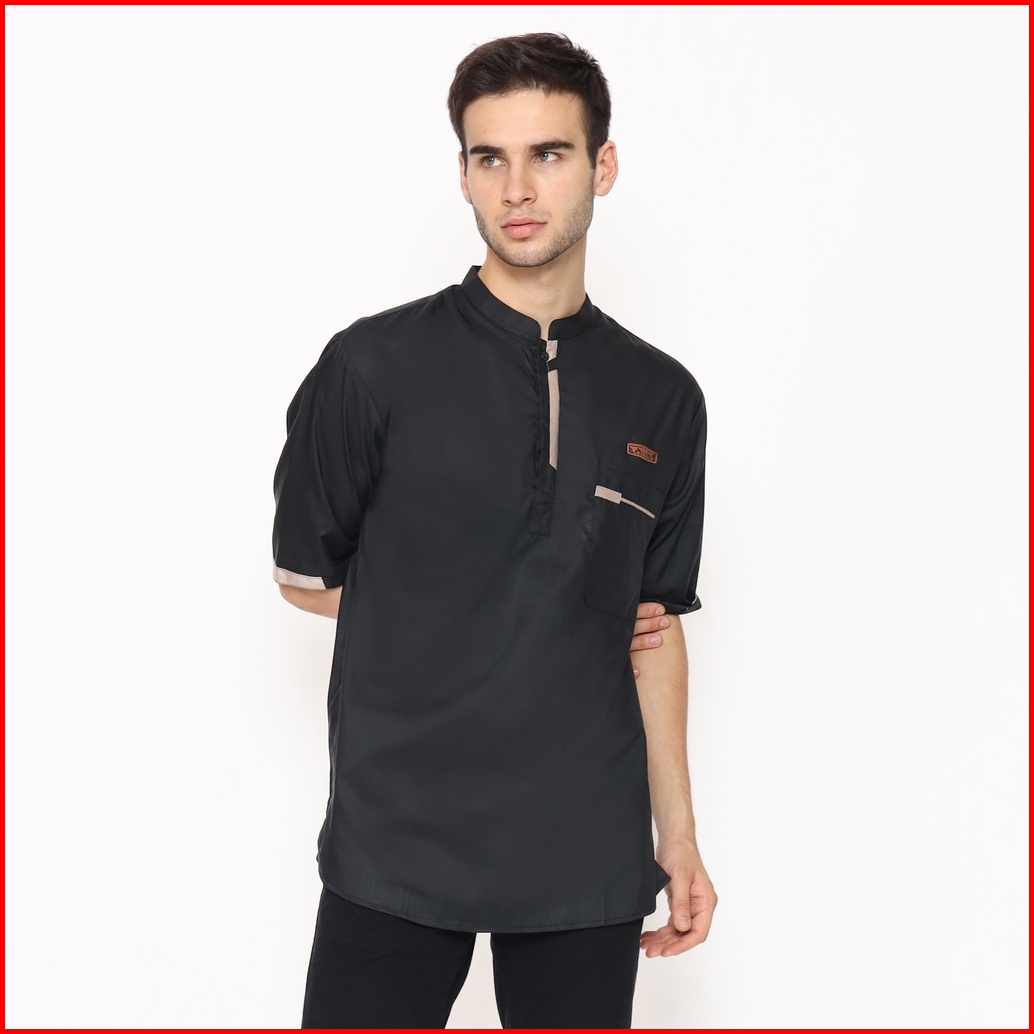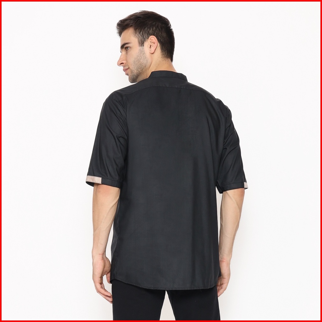 Alawi - Asakhi Baju Koko Kurta Premium Lengan Pendek Warna Hitam M L Xl