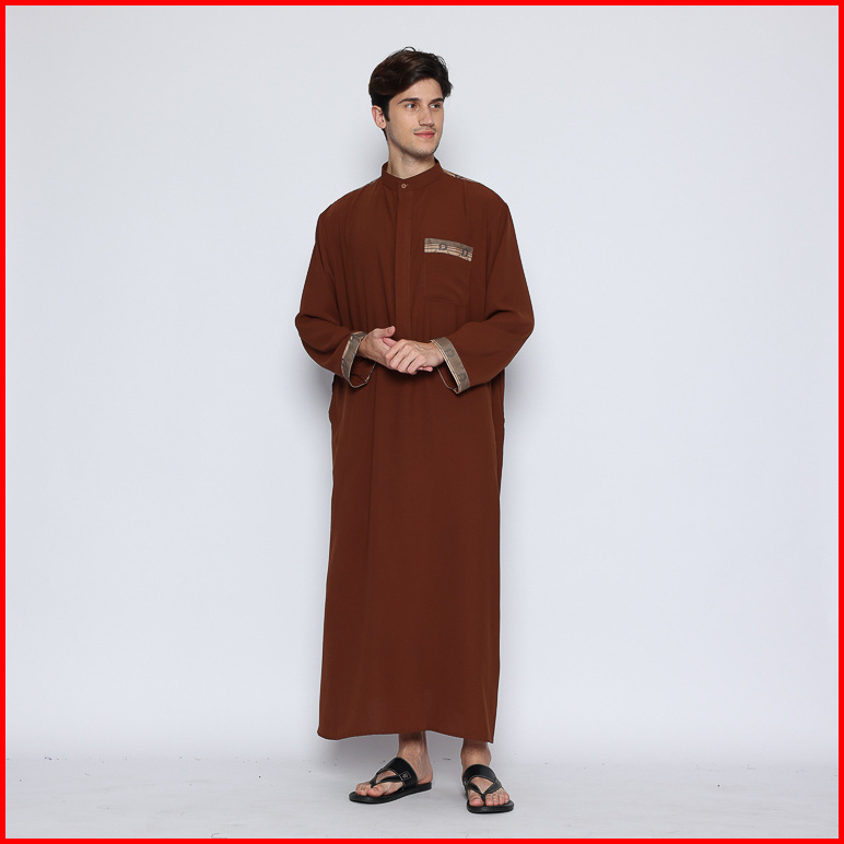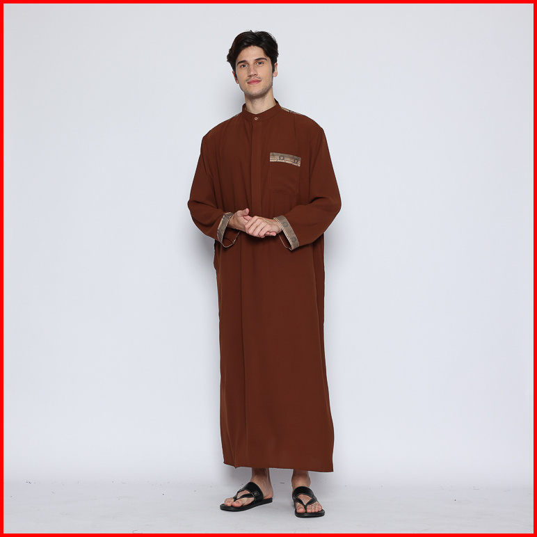 Gamis Pria Panjang Yasin Thobe Caramel Cafe Jubah Panjang Pakaian Syari Laki-laki Bahan Premium Allev