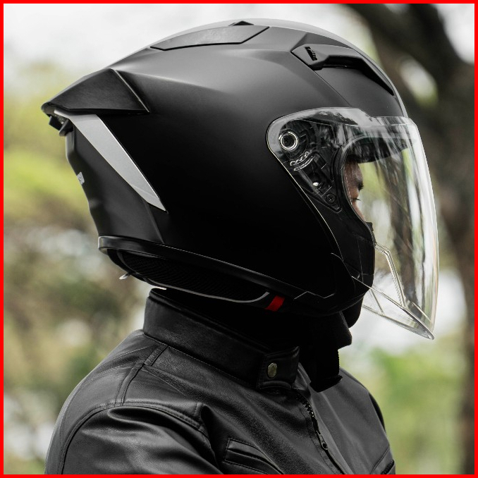 Helm Half Face Jitsu Hybrid Solid Hitam Doff Terbaru Sni Visor Clear Sporty