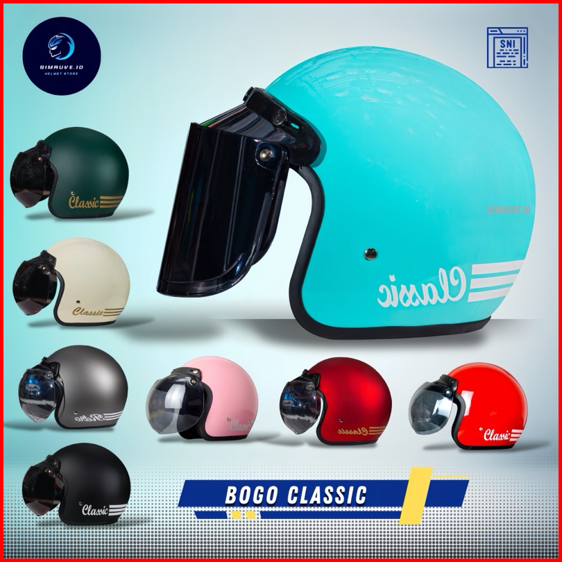 Helm Bogo Classic Premium Helm Halface Free Kaca Cembung Atau Datar Helm Sni