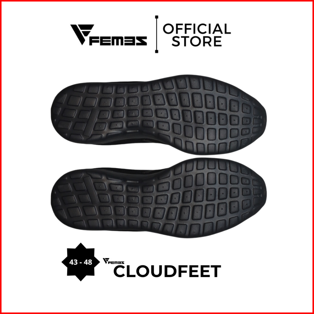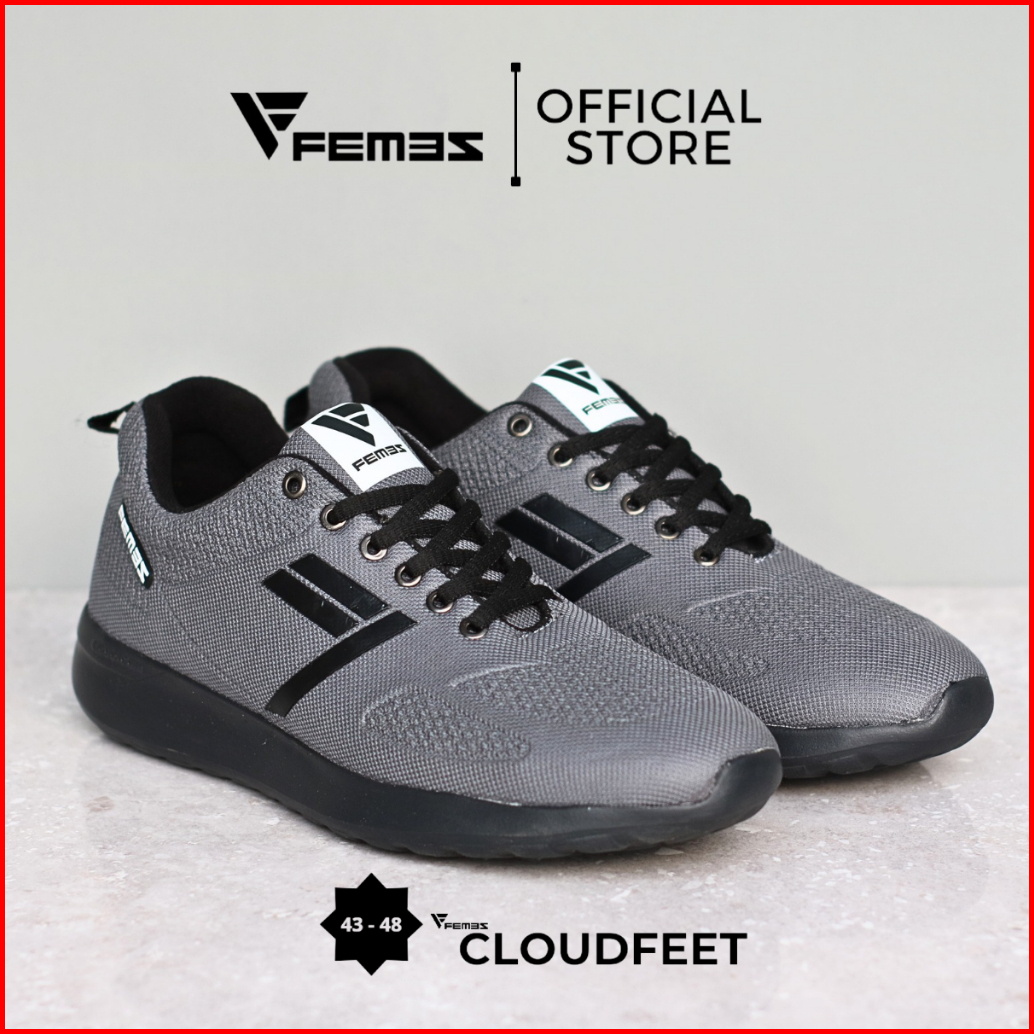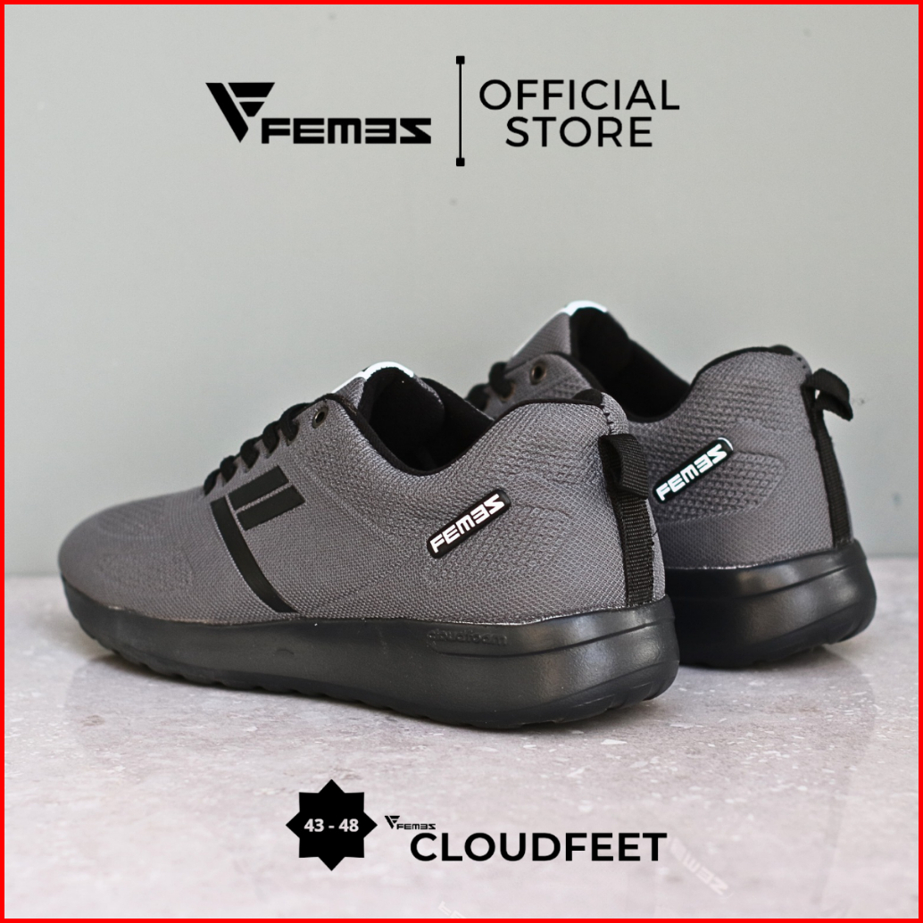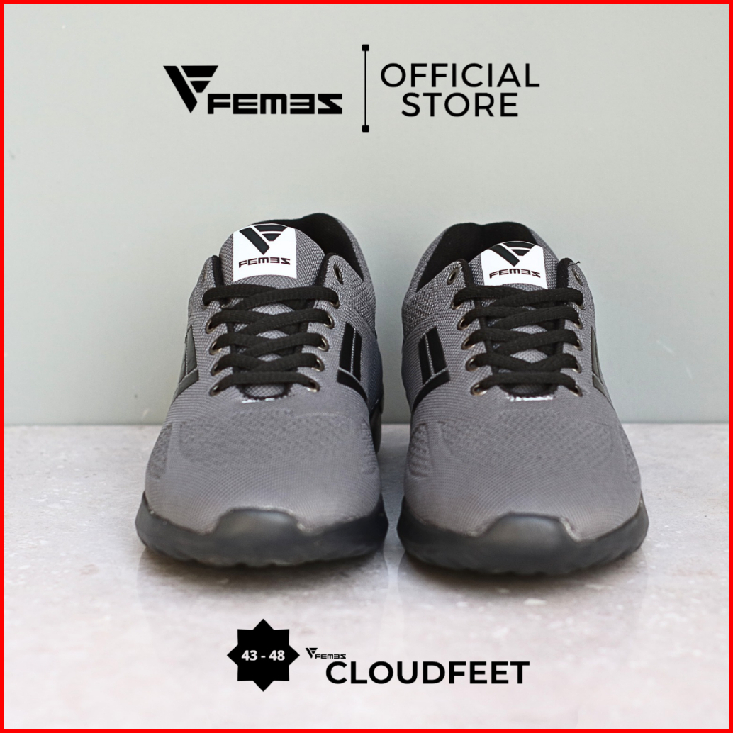 Femez Cloudfeet Sepatu Pria Ukuran Big Size Jumbo 43-48 Abu Hitam Black Running Olahraga
