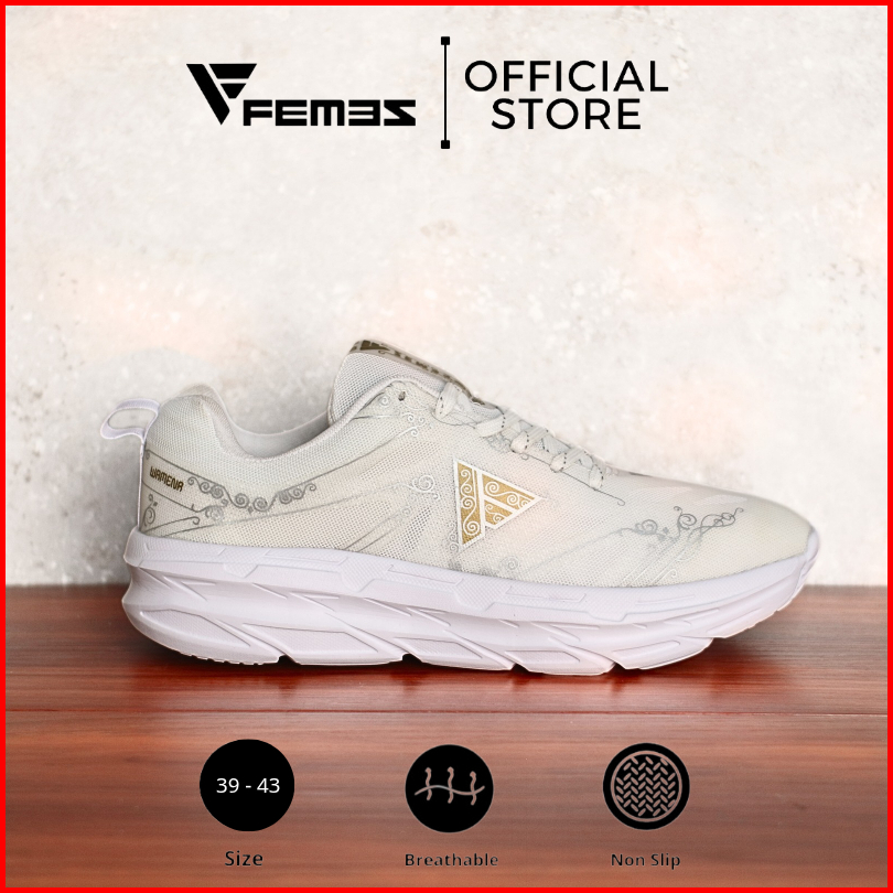 Femez Wamena 1.0 Sepatu Lari Full Putih Casual Sneakers Sekolah Kerja Pria Wanita Zumba Gym Running