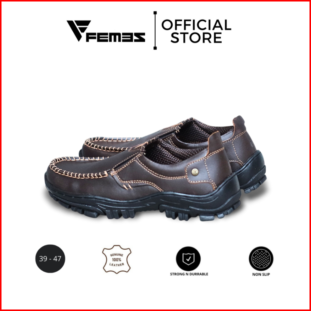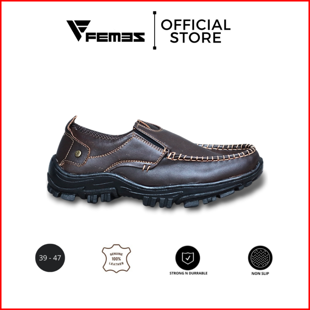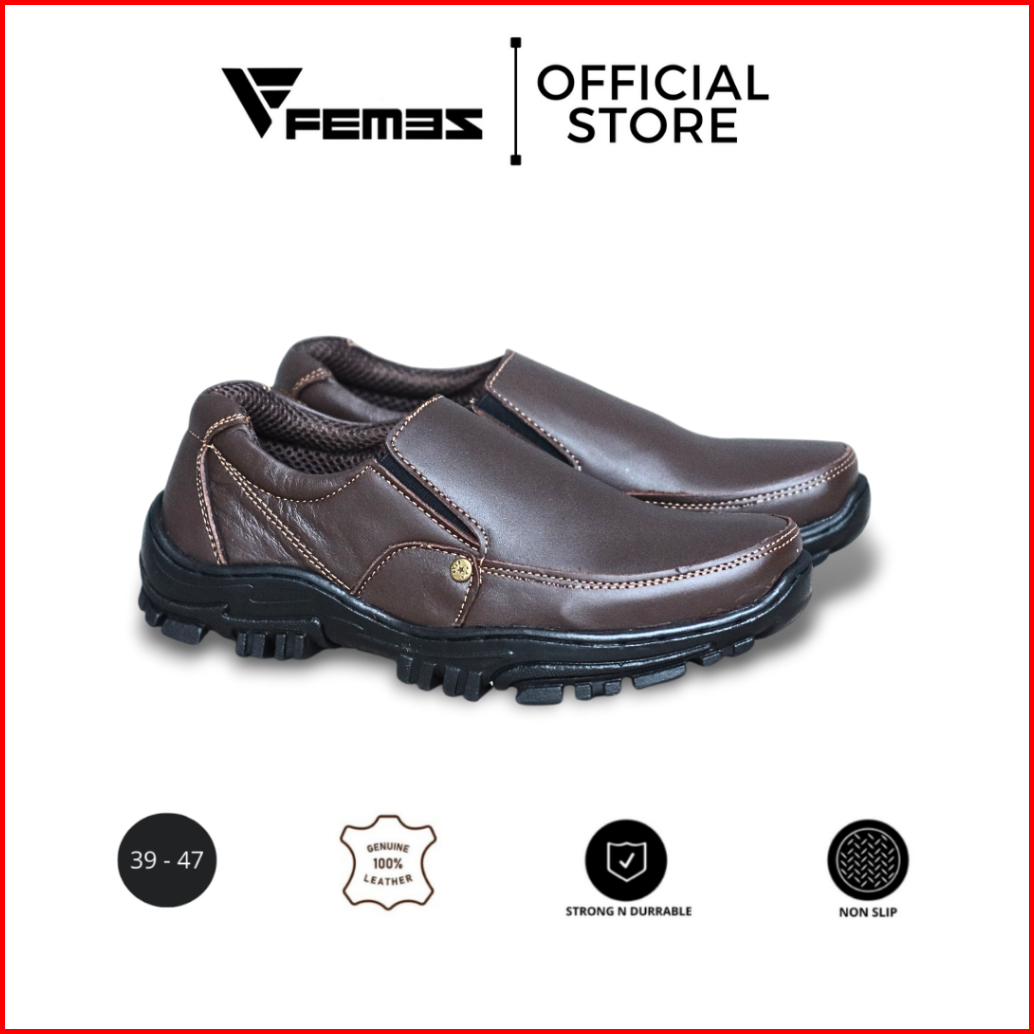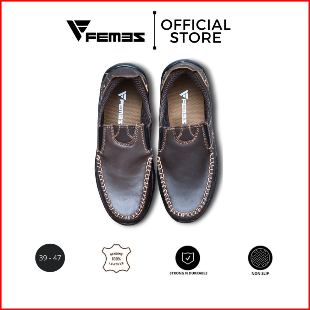 Femez Sepatu Pria Slip On Loafer Kulit Asli Cokelat Tua Coklat Big Size Jumbo Formal Working 39-47