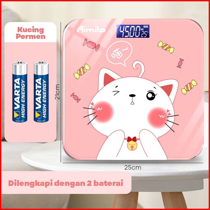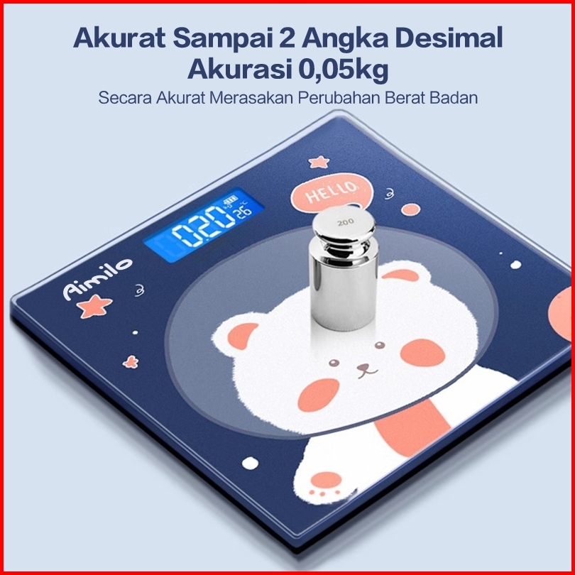 Ready Aimilo Timbangan Badan Digital Kartun Pengukuran Akurat Timbangan Layar Lcd Berat Max 180kg