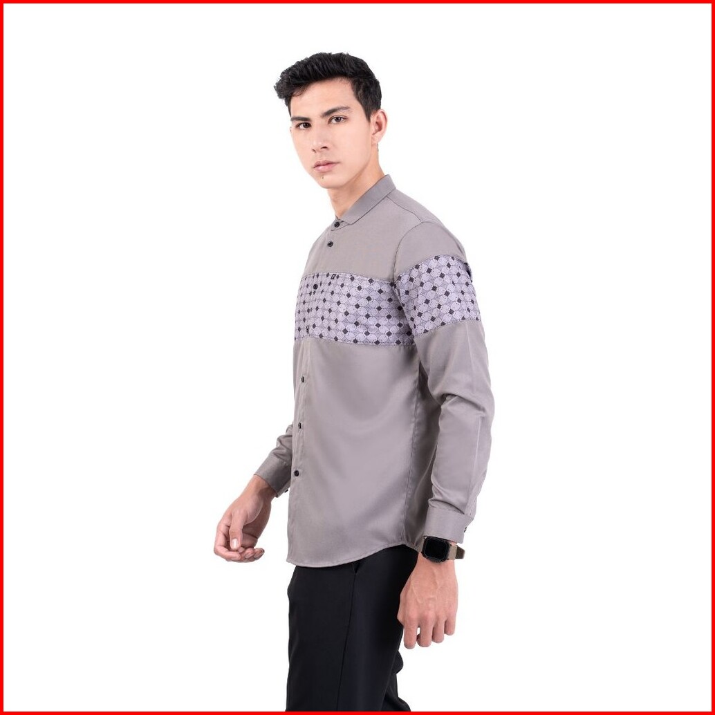 Fadkhera Aufan Grey Baju Koko Pria Modern Premium Atasan Muslim Lengan Panjang