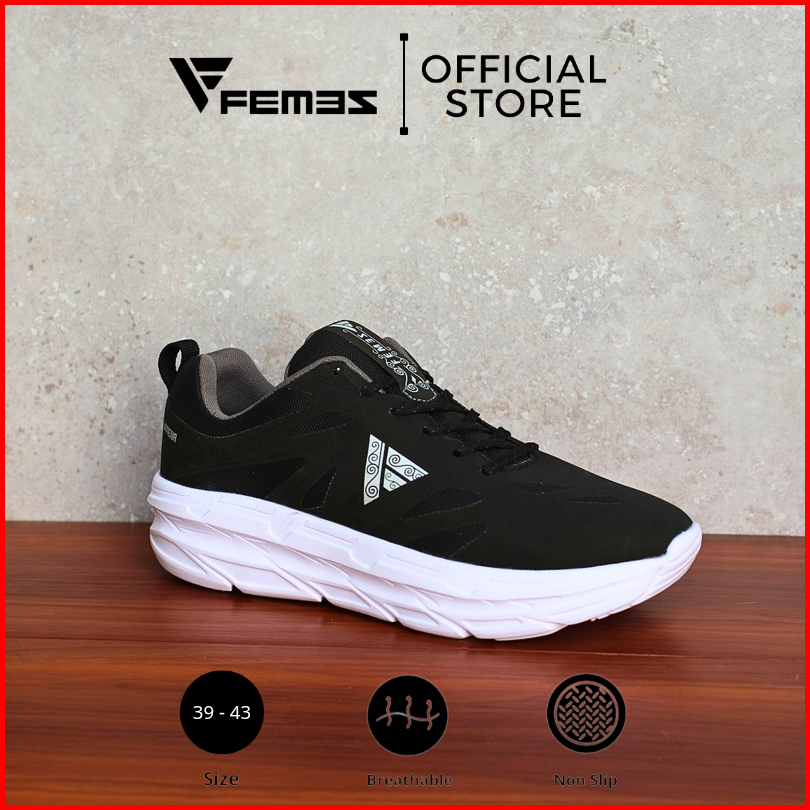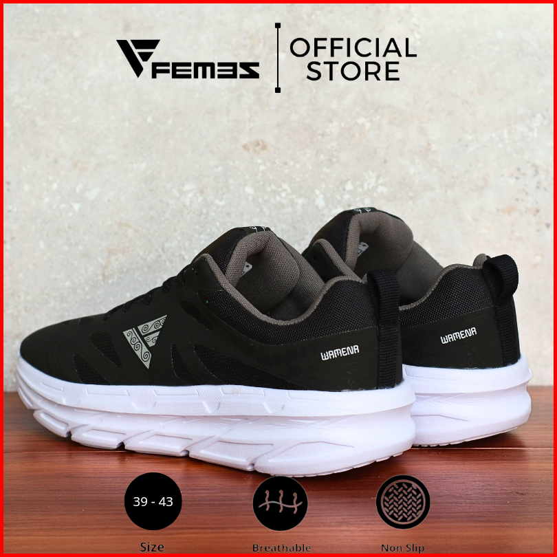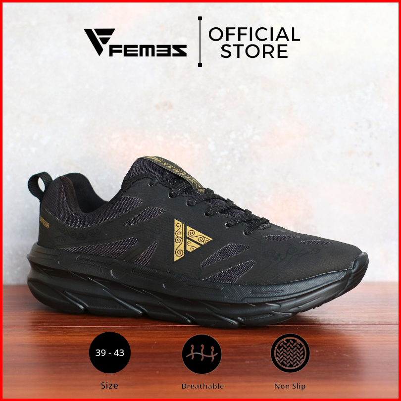 Femez Wamena 1.0 Sepatu Lari Full Hitam Casual Sneakers Sekolah Kerja Pria Wanita Zumba Gym Running